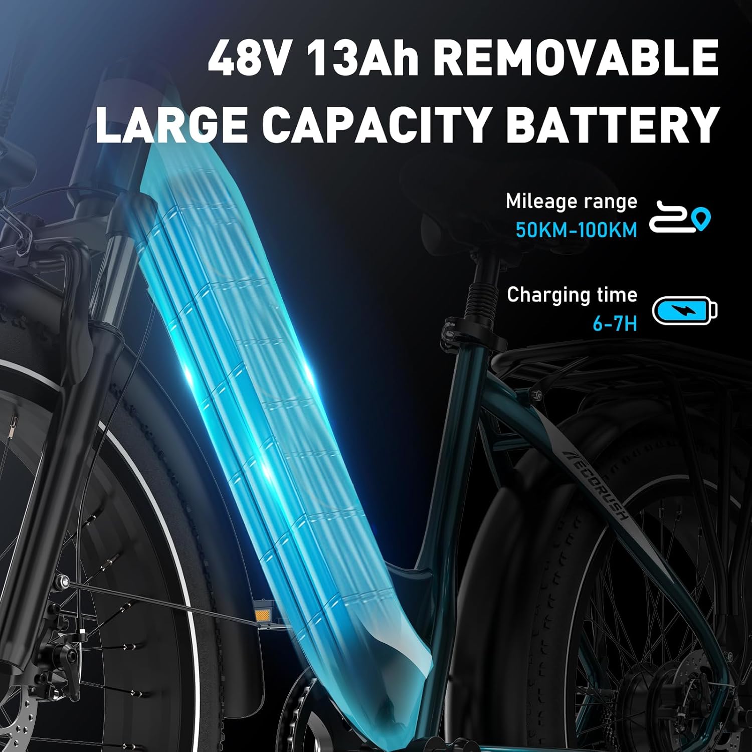 Sa batterie lithium-ion 48V 13Ah garantit une longue autonomie, réduisant la fréquence des recharges. Amovible et rechargeable facilement, elle permet de parcourir de longues distances sans contrainte, offrant une liberté de mouvement inégalée.