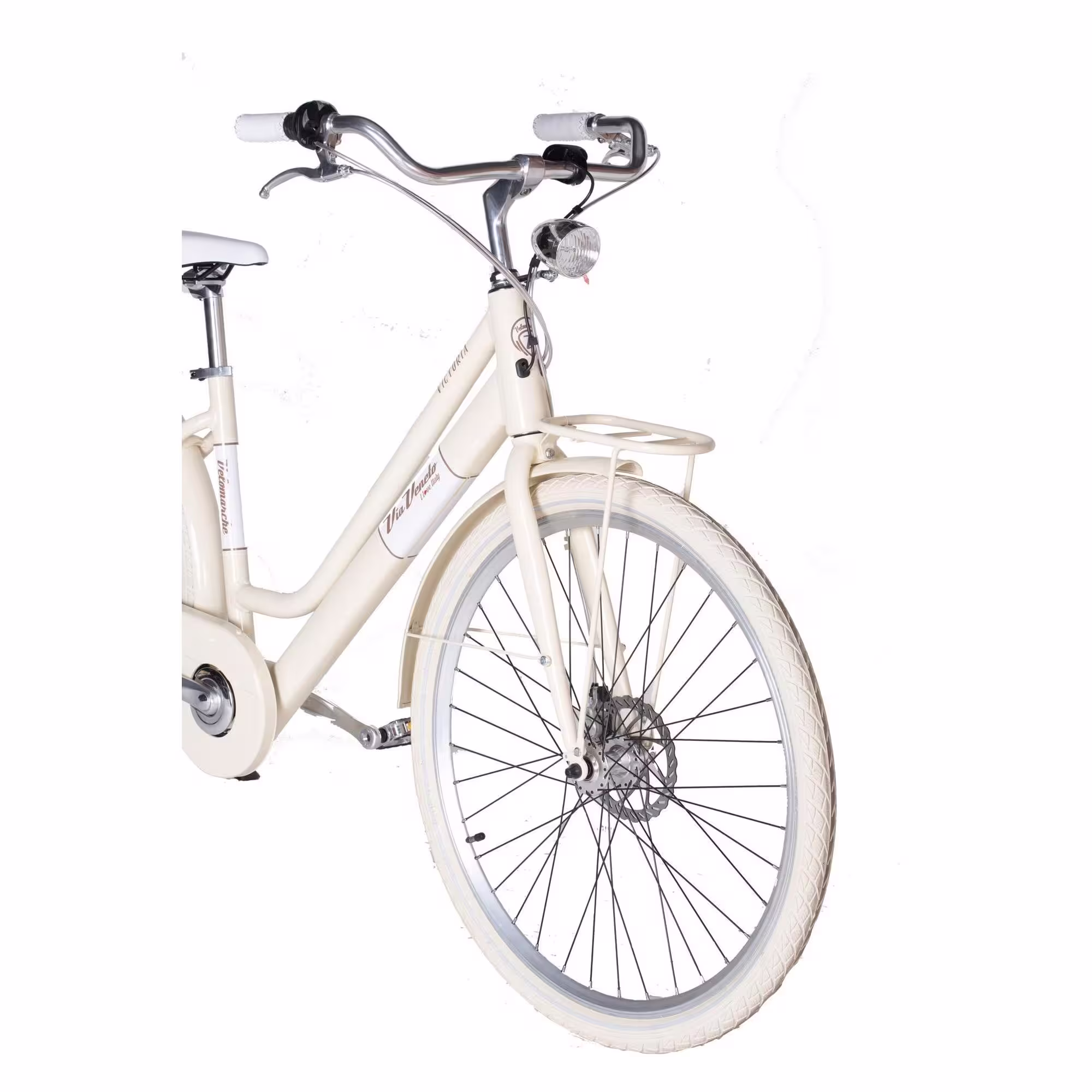 Le vélo léger pour usage urbain et tourisme possède des roues de 28 pouces avec jantes en aluminium double paroi et des pneus 28×1,75. Cette configuration offre un bon compromis entre résistance, adhérence et confort de roulement.