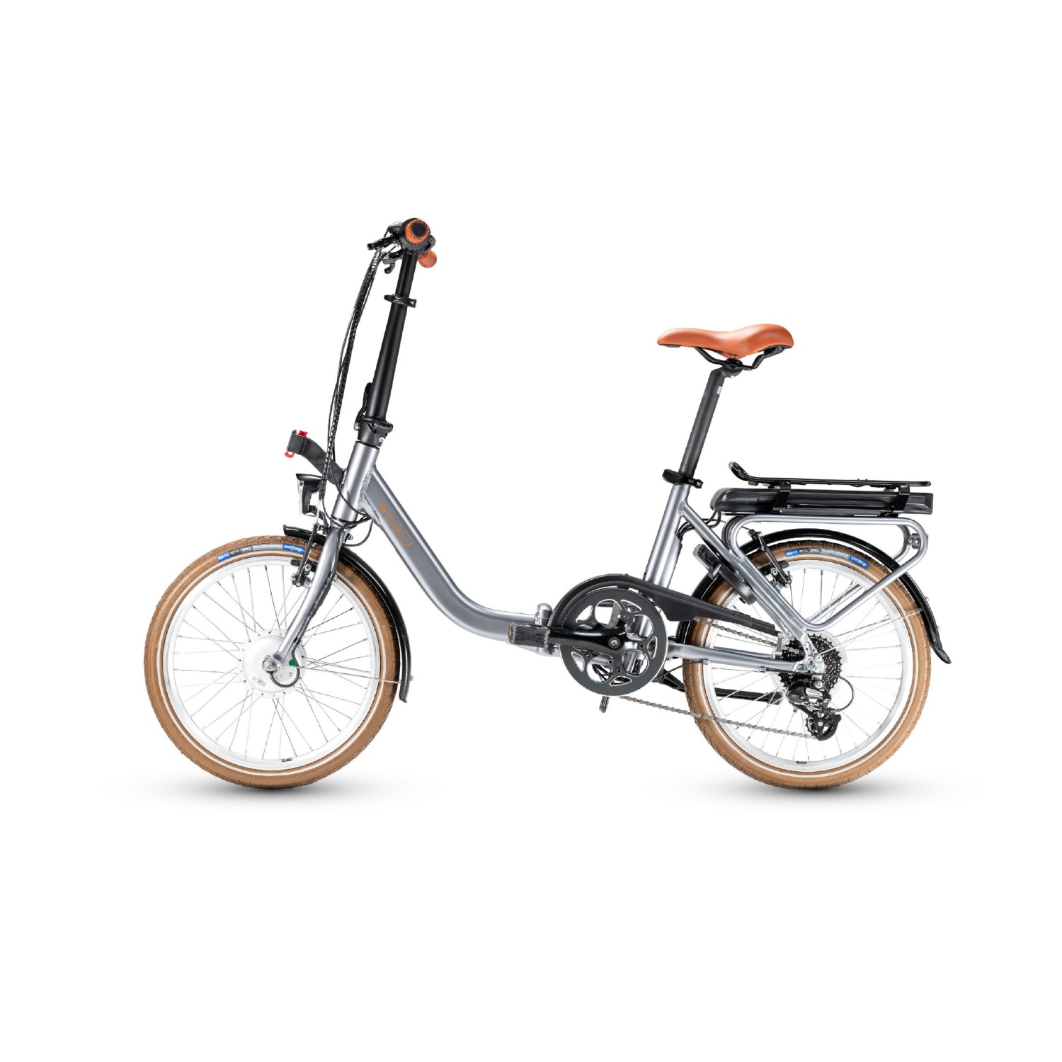 Le vélo électrique compact pliant est équipé d’un moteur E-Going de 37 V et 220 W, positionné dans la roue avant pour une propulsion directe et réactive. Sa batterie arrière de 400 Wh offre une autonomie comprise entre 30 et 60 km, selon le mode d’assistance et le terrain. La console LED latérale permet de gérer facilement les niveaux d’assistance, garantissant un contrôle précis de la puissance et de la consommation.