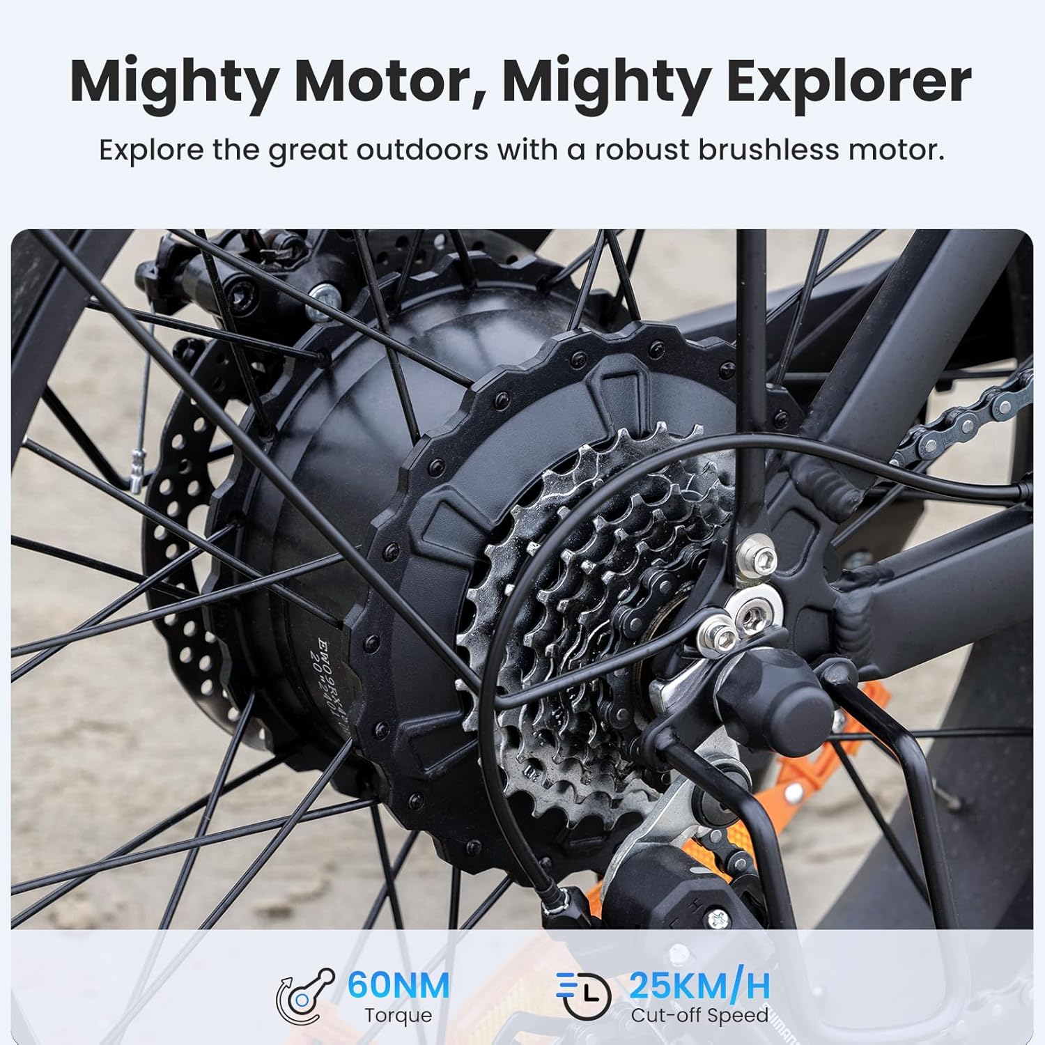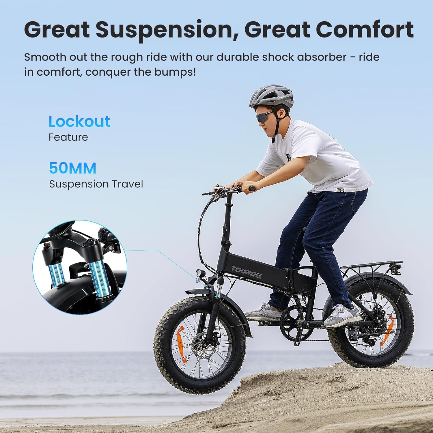 Grâce à ses pneus larges de 4 pouces, ce vélo absorbe efficacement les irrégularités de la route, offrant une stabilité renforcée et une meilleure adhérence, même sur des chemins accidentés. Sa suspension à fourche réduit les vibrations et assure une conduite fluide, que vous rouliez sur du bitume ou des sentiers.