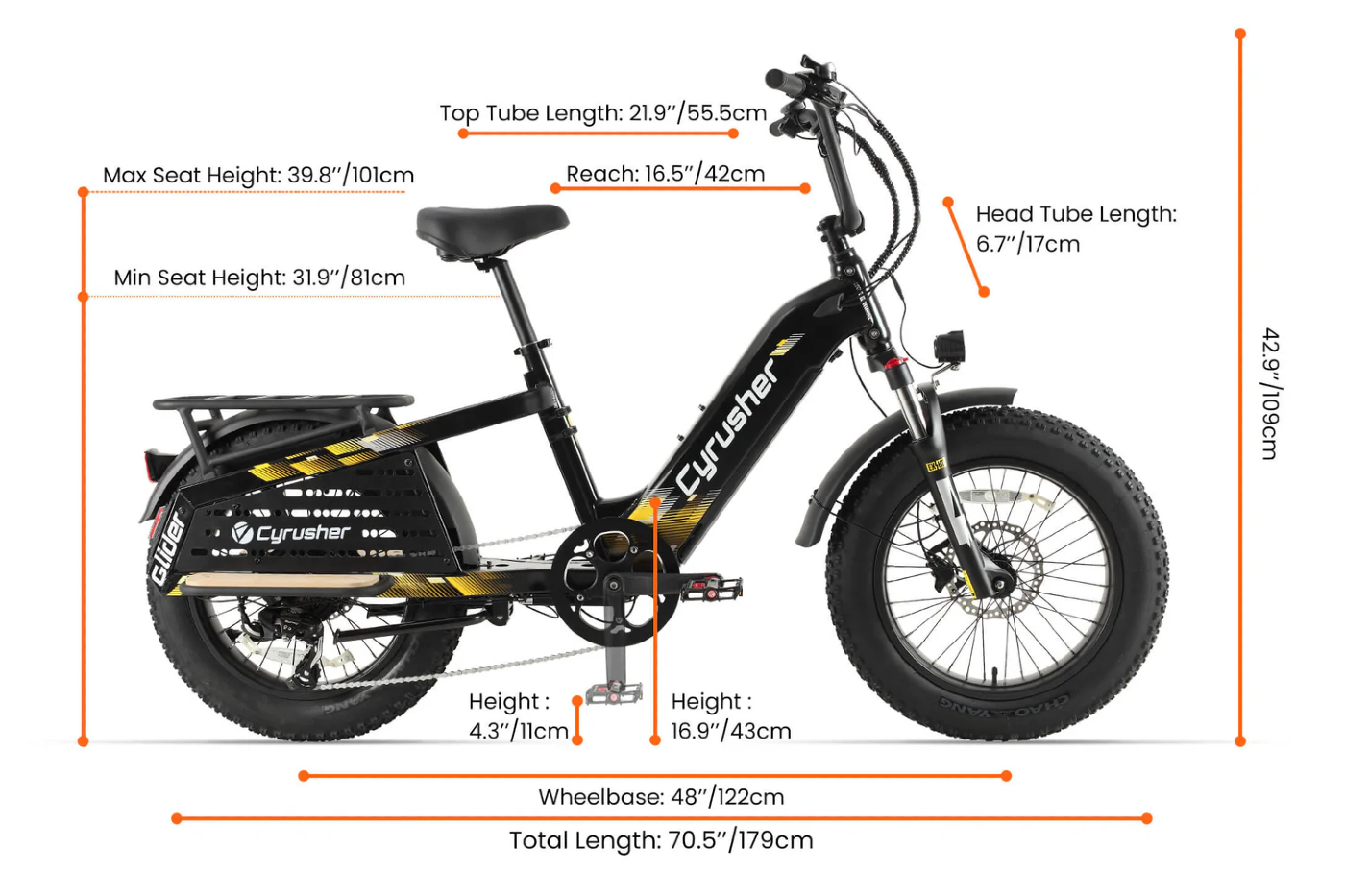 Notre vélo électrique dispose d’un cadre standard de 42 cm. Cette taille de cadre a été conçue pour s’adapter à une large gamme d’utilisateurs, avec une hauteur recommandée pour le cycliste comprise entre 150 cm et 190 cm. Cette polyvalence garantit que la majorité des adultes trouveront une position de conduite confortable et sécurisée, quelle que soit leur morphologie. La hauteur minimale de la selle est de 81 cm et la hauteur maximale de 101 cm, permettant des ajustements précis pour une ergonomie optimale.