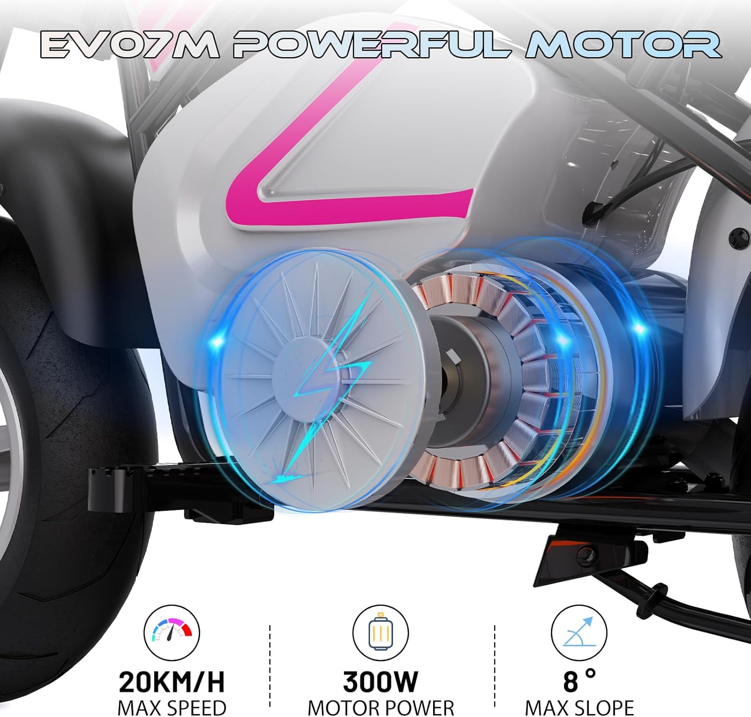 La sécurité est notre priorité. Ce modèle intègre un frein à disque efficace ainsi qu’un centre de gravité bas, offrant plus de contrôle et de stabilité à votre enfant. Ces caractéristiques permettent une prise en main facile et réduisent les risques de chute, même pour les jeunes pilotes débutants.