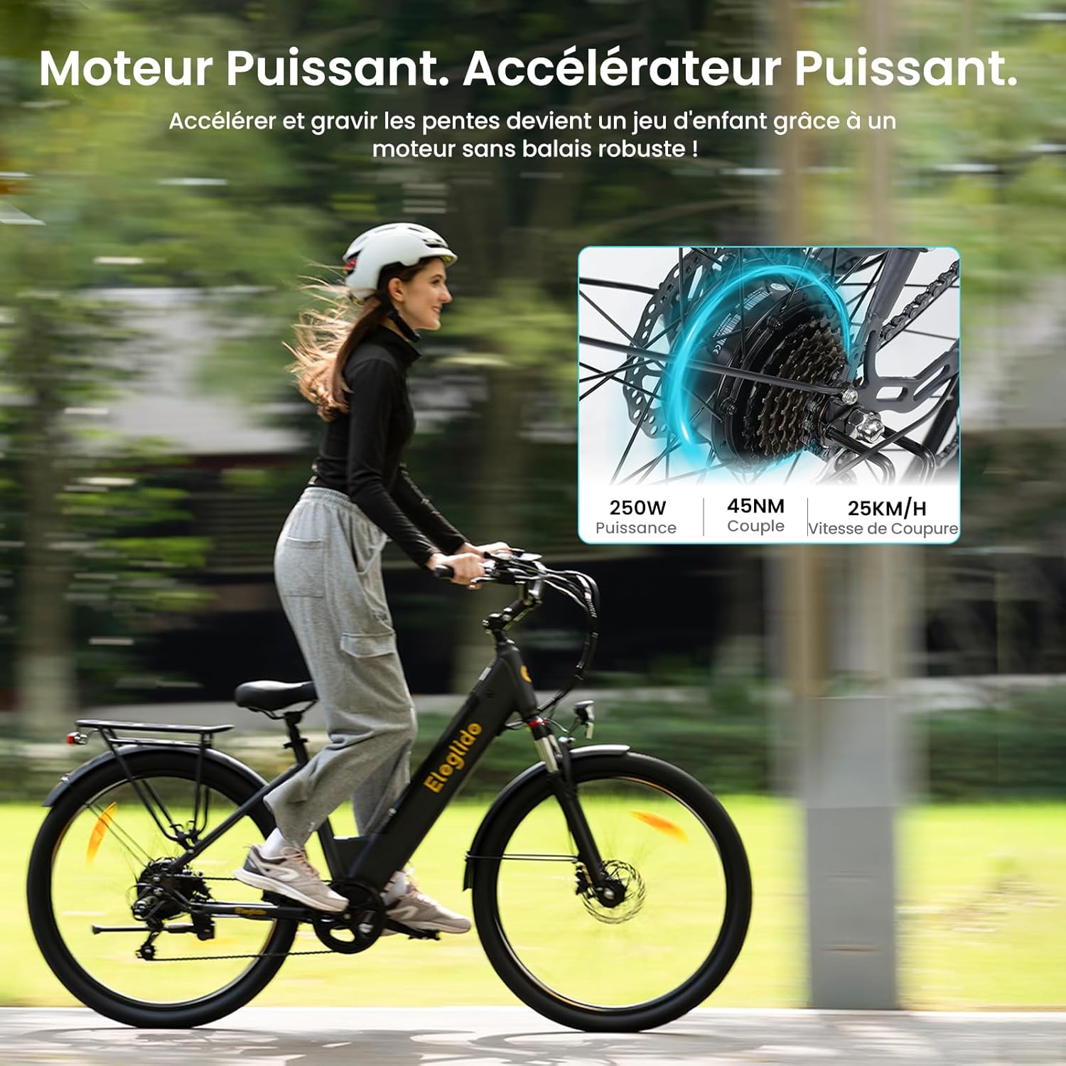 Ce modèle est équipé d’un système de propulsion placé au centre du cadre, offrant un équilibre idéal et une meilleure répartition du poids. Cette configuration permet des accélérations fluides, une excellente stabilité et une efficacité énergétique accrue. Grâce à une puissance de 250 W et un couple de 45 Nm, il facilite les montées et garantit une assistance réactive, pour des trajets urbains ou de loisir toujours agréables.