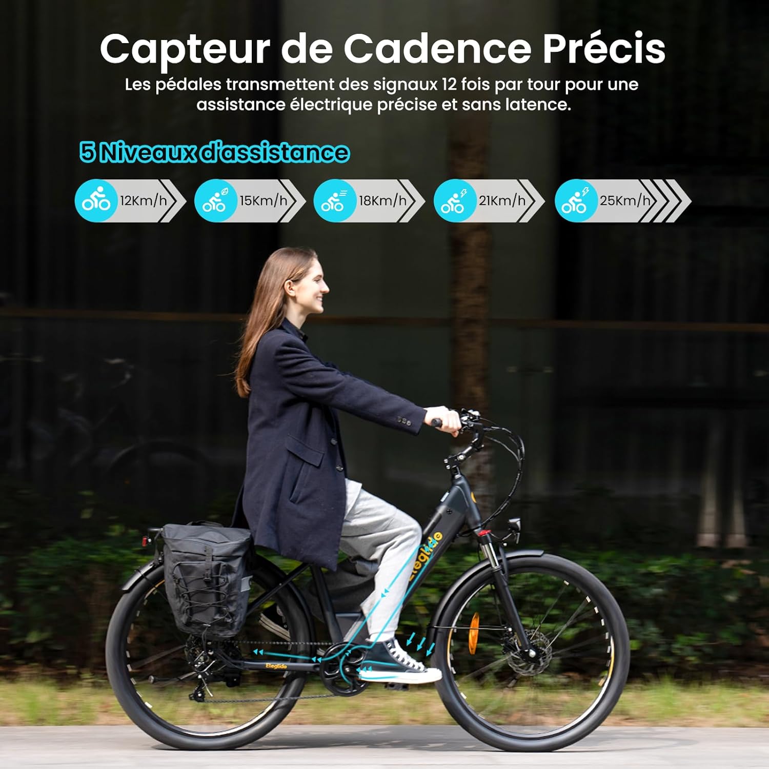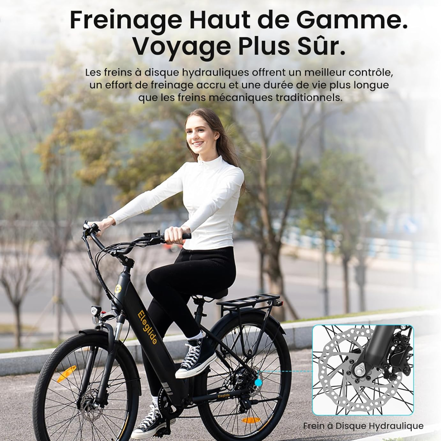 Avec ses freins à disque hydrauliques haut de gamme et son système d’éclairage certifié, ce vélo urbain à assistance médiane met votre sécurité au premier plan. La réactivité du freinage et la visibilité optimale vous assurent des trajets de nuit ou sur routes mouillées en toute confiance, avec une distance d’arrêt nettement réduite.