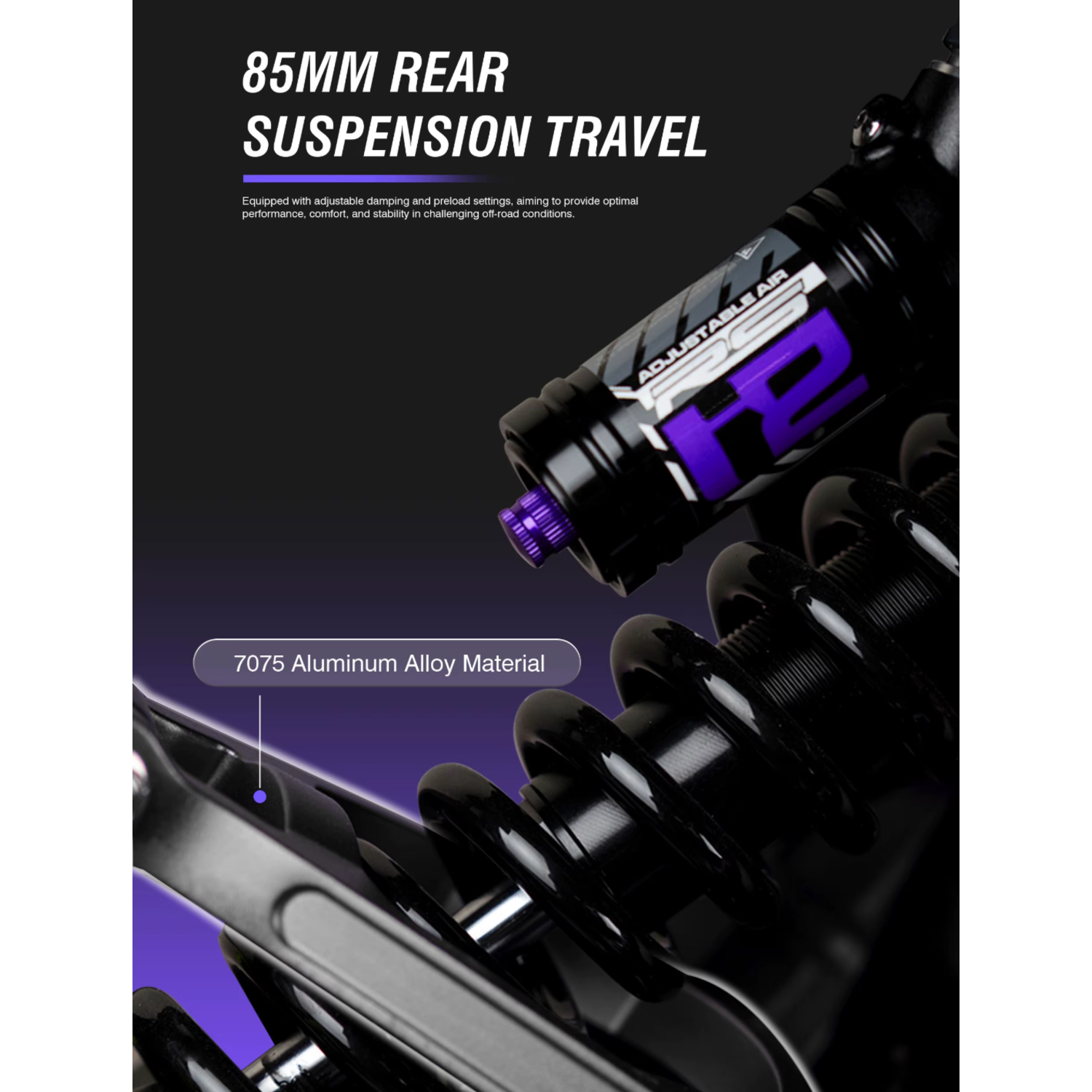 Son cadre en aluminium assure une structure solide et résistante, tout en restant léger pour une meilleure maniabilité. Idéal pour affronter tous types de terrains sans compromettre votre confort.