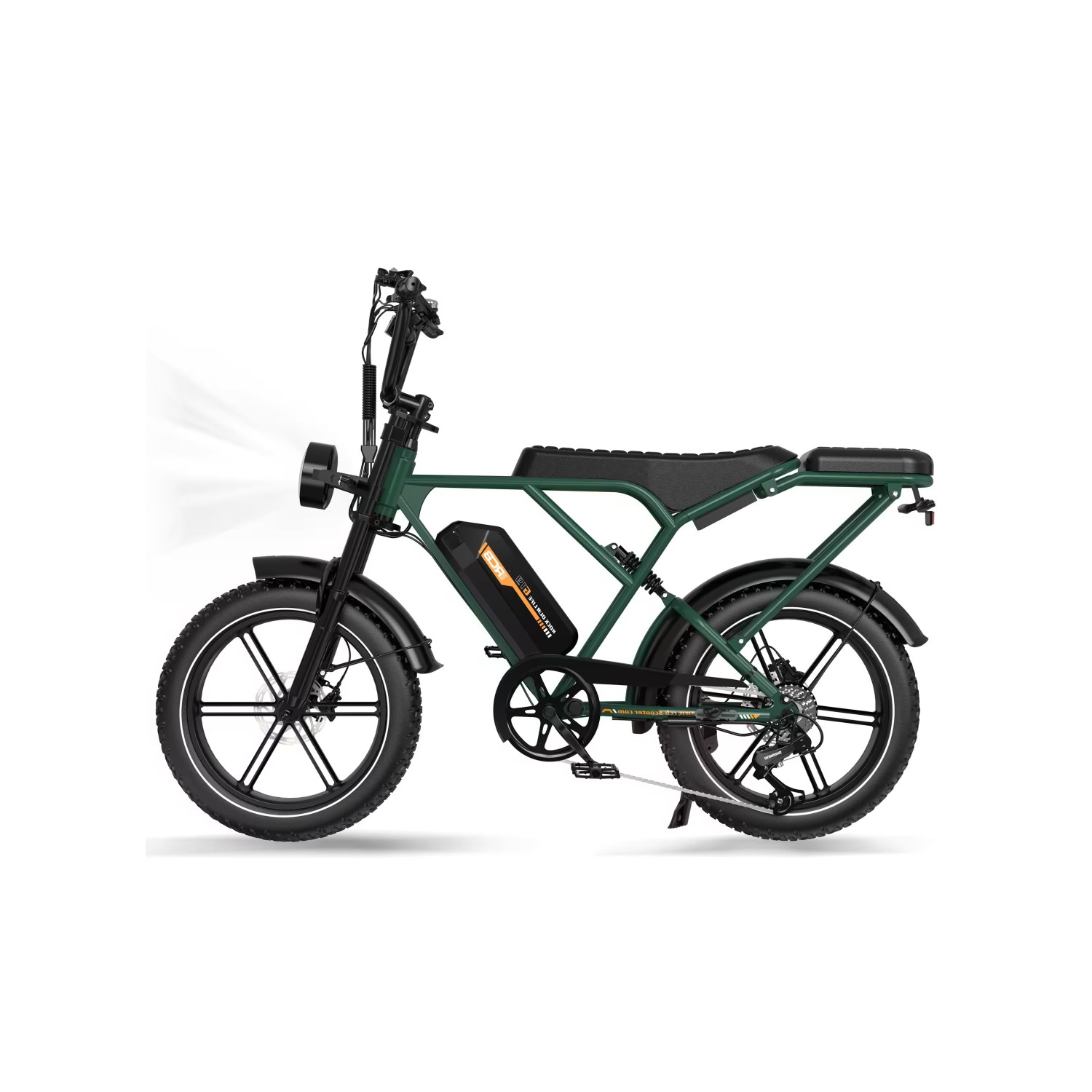 Monté sur pneus 20×4.0 anti-chocs, notre deux-roues électrique NFC offre une surface d’appui accrue et une bonne adhérence sur revêtements variés. Les jantes en acier et la suspension tout suspendu contribuent à la stabilité dynamique ; la capacité de charge maximale est 120 kg.