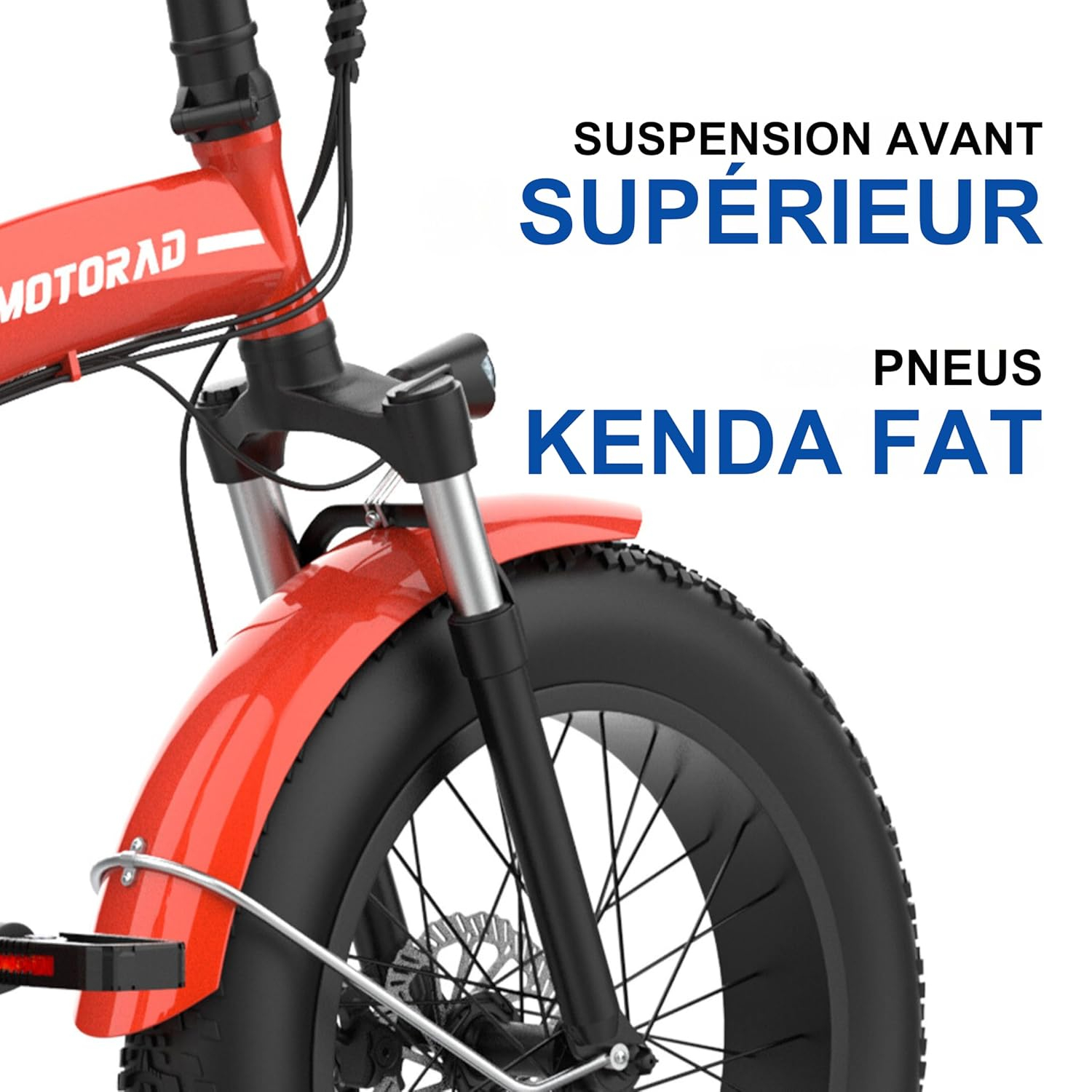 Notre bicyclette électrique se distingue par ses pneus Kenda de 20 x 4 pouces, conçus pour offrir une adhérence exceptionnelle et une résistance accrue aux crevaisons sur une multitude de terrains. Que vous affrontiez des sentiers de montagne, des plages de sable ou des chemins de campagne, ces pneus procurent une stabilité remarquable. La suspension avant à fourche joue un rôle crucial en absorbant efficacement les chocs, minimisant ainsi les vibrations et améliorant considérablement le confort de conduite. De plus, les freins à disque hydrauliques assurent un freinage puissant et sécurisant, vous offrant une maîtrise totale dans toutes les situations. La durabilité des composants est un atout majeur.