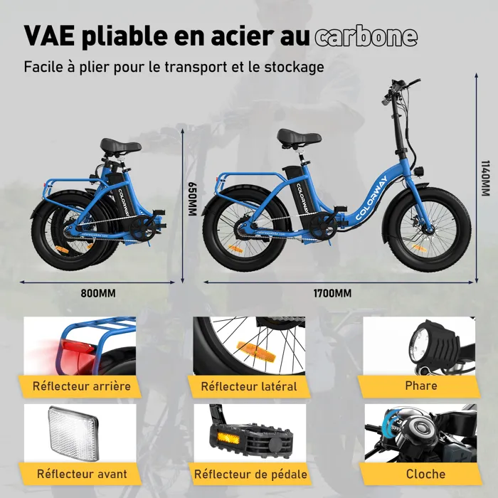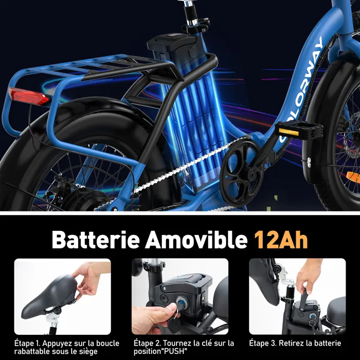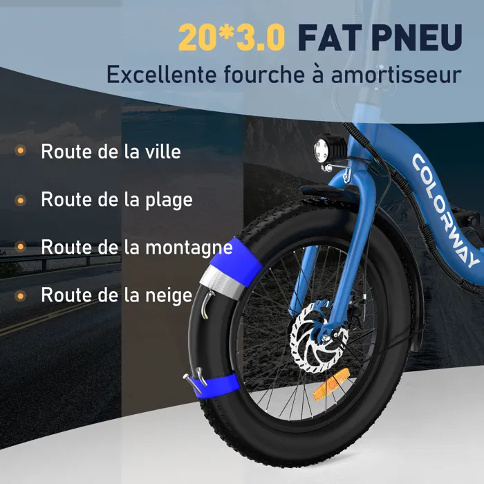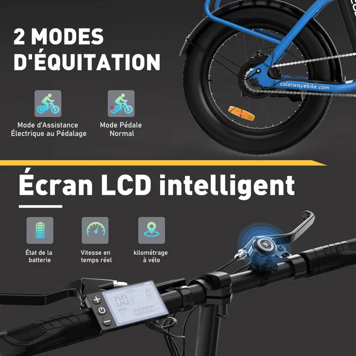 La structure de notre Vélo Électrique Panier Arrière est fabriquée en fer, conférant au cadre une solidité et une durabilité remarquables. Équipé de freins à disque à l’avant et à l’arrière, ce modèle assure un freinage puissant et sécurisé en toutes circonstances. Les pneus 20×3.0 pouces offrent une excellente adhérence et une absorption des chocs efficace, garantissant une stabilité accrue sur diverses surfaces. La sécurité de l’utilisateur est notre priorité.