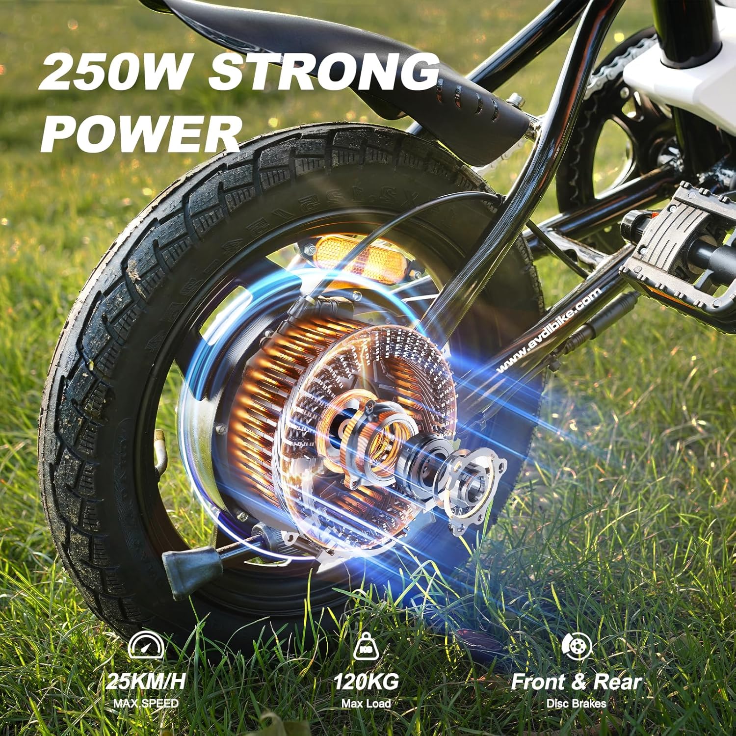 Votre sécurité est notre priorité, c’est pourquoi notre vélo est doté d’un système de freins à disque à l’avant et à l’arrière, garantissant un freinage fiable et précis en toutes circonstances. Les pneus de 14 pouces, associés à une capacité de charge maximale de 120 kg, assurent une conduite stable et confortable, même sur des terrains variés. Des phares LED intégrés et un écran LCD viennent compléter les fonctionnalités, augmentant la visibilité et offrant des informations essentielles durant vos parcours.