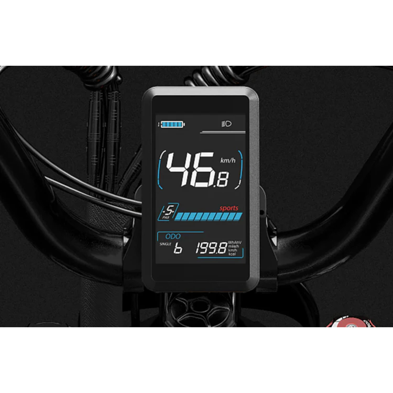 Notre vélo intègre un dérailleur à 7 vitesses, permettant une adaptation facile à diverses conditions de terrain et à vos préférences de conduite. Le grand écran LCD couleur affiche des informations essentielles telles que la vitesse, l’autonomie et le mode d’assistance, assurant une interface intuitive. Un phare à LED ultra-lumineux de 4,5 pouces, offrant 780 lumens, garantit une visibilité optimale lors de vos sorties nocturnes, tandis qu’un klaxon électronique de 95 dB améliore votre sécurité en avertissant les piétons. De plus, la fonction d’accélérateur permet un contrôle précis de la vitesse, réduisant la fatigue lors des longs trajets.