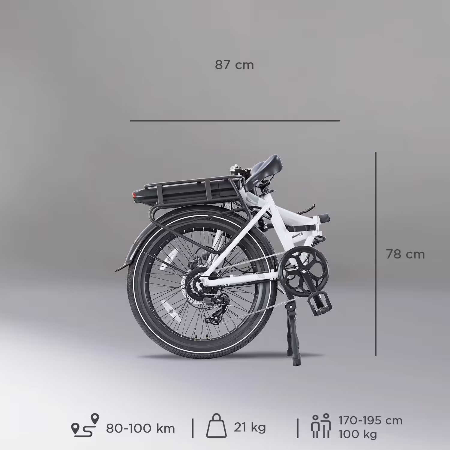 Notre vélo est conçu pour s’adapter à un large éventail d’utilisateurs. Avec ses dimensions dépliées de 113 x 163 x 59 cm, il offre une posture de conduite confortable. Une fois plié, ses dimensions se réduisent à 87 x 78 x 46 cm, le rendant facilement logeable dans les espaces restreints. Il est idéal pour les personnes mesurant entre 1,55 m et 1,95 m et supporte une charge maximale de 100 kg.