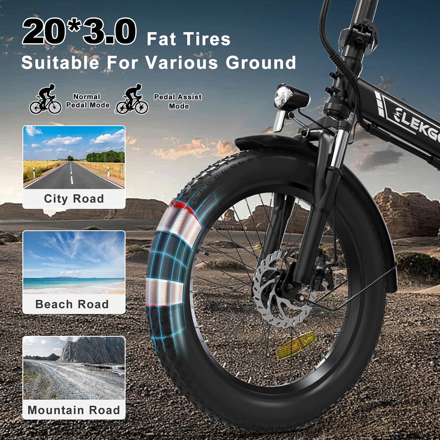 Ses gros pneus 20″ x 3.0″ offrent une adhérence optimale sur différents types de routes : graviers, neige, sable, routes urbaines… Vous bénéficiez ainsi d’un meilleur confort de conduite, quelle que soit la surface.