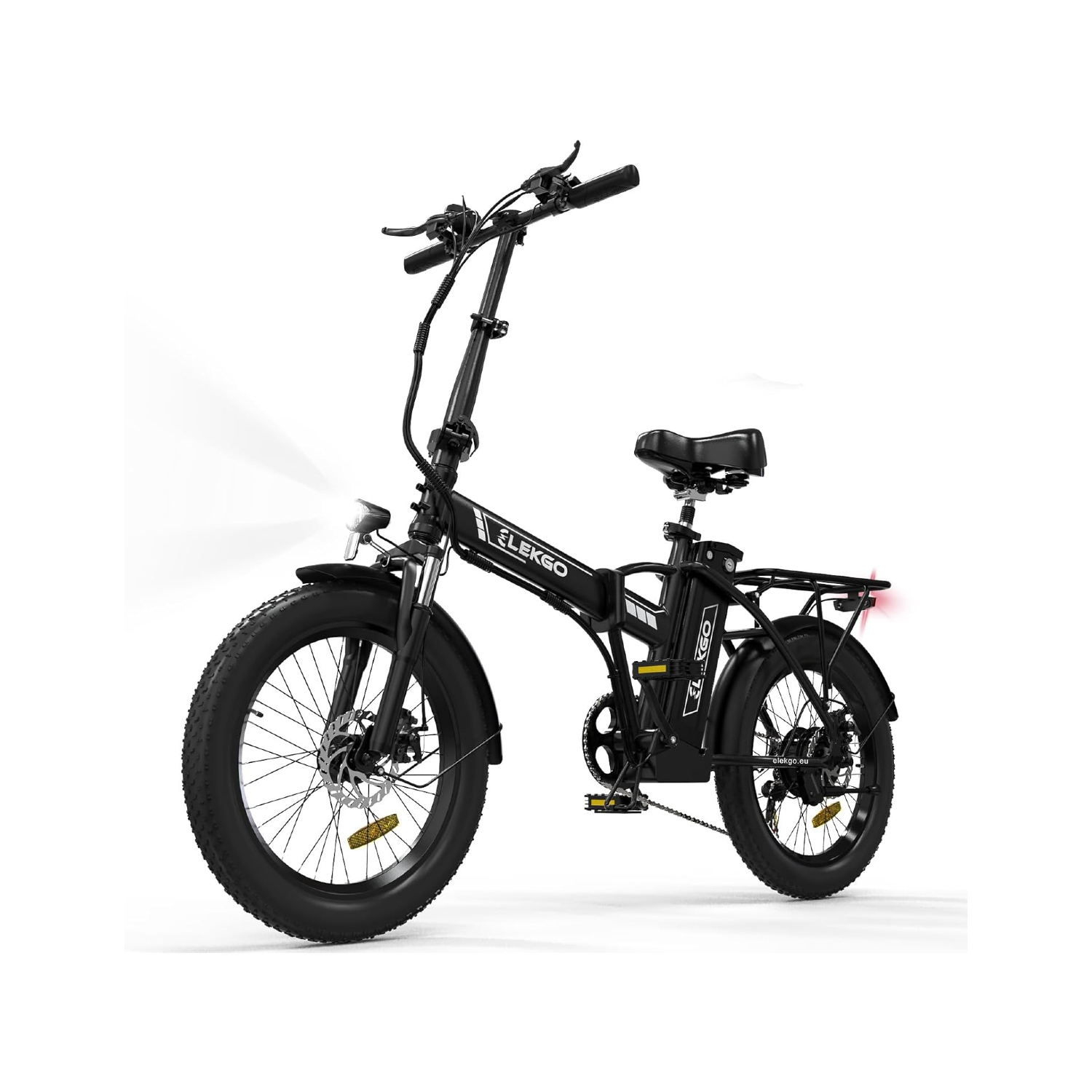 Avec sa suspension avant et ses freins à disque avant et arrière, notre Vélo Électrique Pliant absorbe efficacement les chocs et assure un freinage fiable en toutes circonstances. Son phare LED vous permet de rouler en toute confiance, même en conditions de faible luminosité.