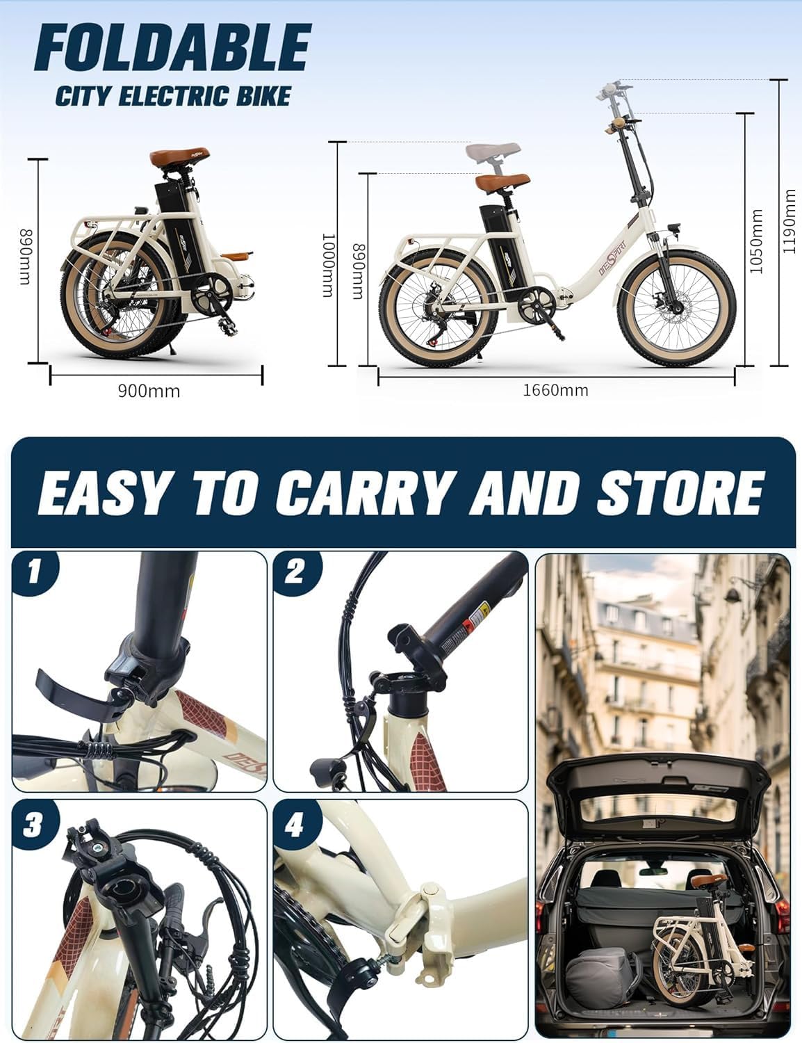 Adoptez une nouvelle façon de vous déplacer avec notre solution de transport pliable, confortable et économique. Ce vélo électrique pratique pour usage quotidien est plus qu’un moyen de locomotion : c’est un allié fiable, moderne et adaptable à votre mode de vie actif.