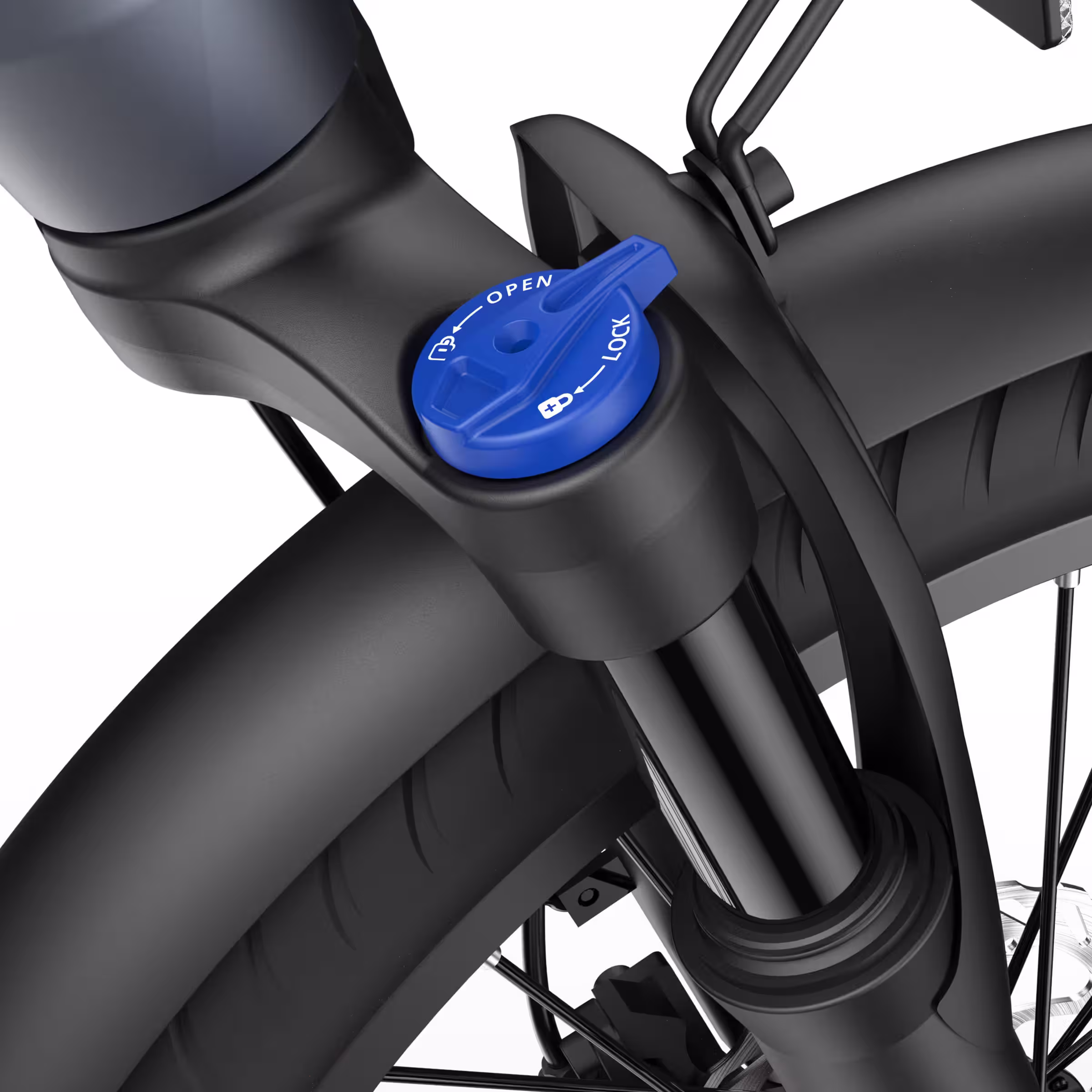 Équipé d’une suspension avant réglable, ce vélo pliant électrique avec frein à disque absorbe efficacement les chocs, offrant ainsi une conduite fluide et agréable, même sur des routes irrégulières. Que vous rouliez sur des pavés, des sentiers ou des routes urbaines, vous bénéficierez d’un confort supérieur, ce qui rend chaque trajet plus agréable.