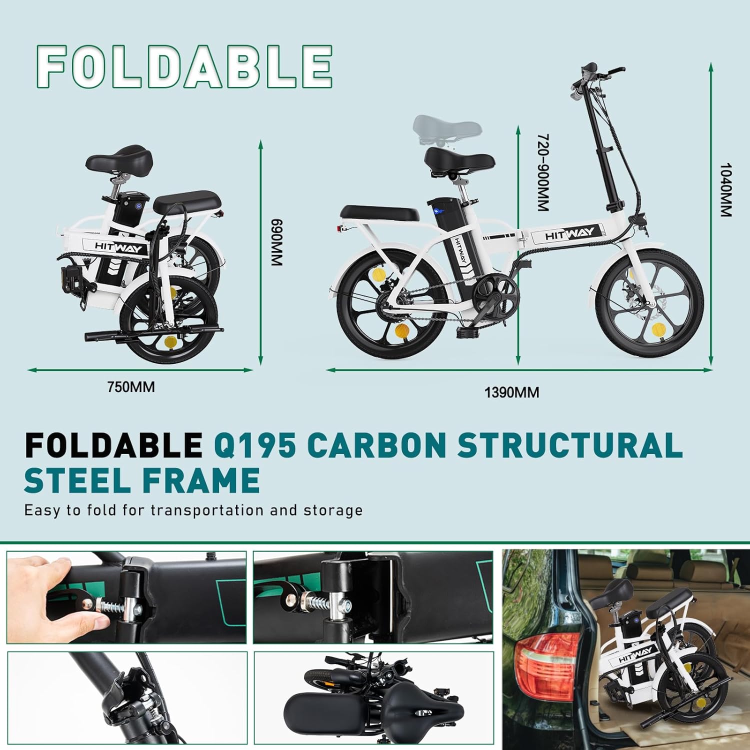 Fabriqué en acier au carbone haute résistance, ce modèle offre une durabilité à toute épreuve, même lors d’une utilisation intensive. Il se plie en quelques secondes, ce qui permet de le ranger facilement dans un coffre, un placard ou un espace réduit de véhicule. Ce deux-roues pliant pour véhicule de loisirs a été pensé pour répondre aux contraintes de mobilité sans compromis sur la qualité.