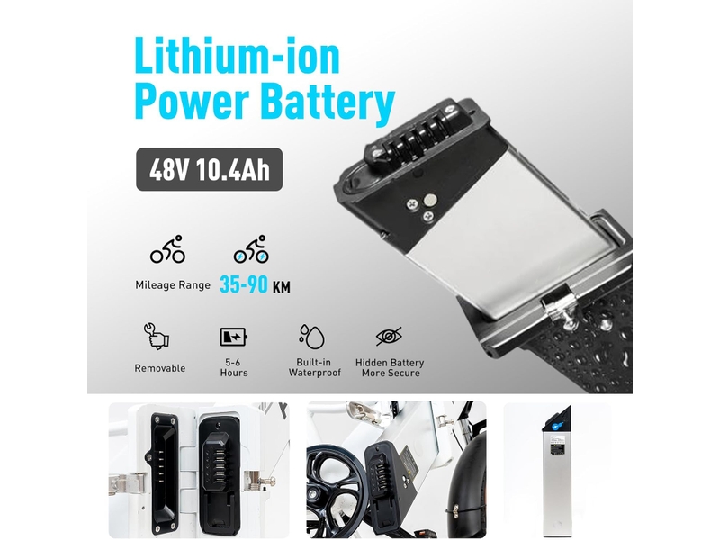 Capacité batterie : 499.2 Wh (48V 10.4Ah)