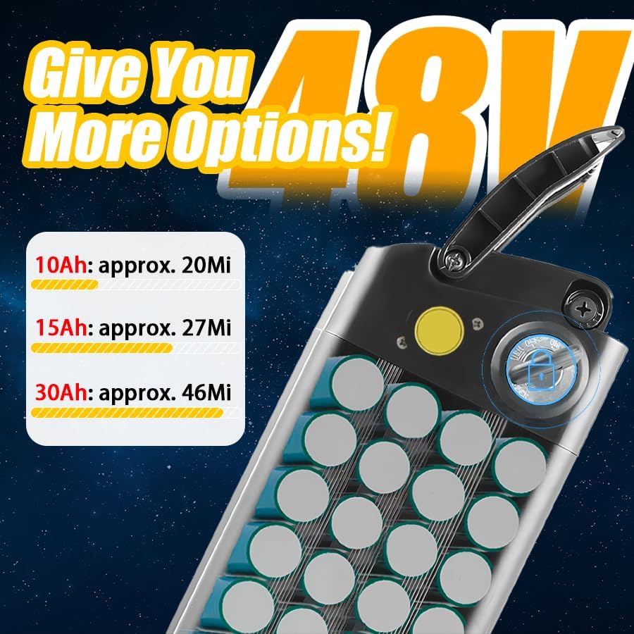 Ce vélo électrique est spécifiquement pensé pour alléger votre quotidien. Équipé d’un moteur robuste de 250 W et d’une batterie amovible de 48 V offrant diverses capacités (10 Ah, 13 Ah, 17,5 Ah, 20 Ah ou 22 Ah), il vous assure une autonomie allant jusqu’à 35 miles en mode assistance. Sa conception compacte et facilement transportable rend vos déplacements en ville fluides, même sur les routes les plus encombrées. Vous apprécierez la légèreté et la maniabilité de ce véhicule à assistance électrique, qui simplifiera grandement le transport de vos emplettes.