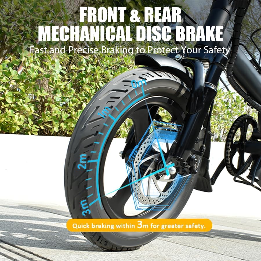 Notre vélo est doté de pneus sous vide de 14 pouces, fabriqués à partir d’un caoutchouc épaissi pour une durabilité accrue. Ces pneus sont conçus pour être antidérapants, résistants à l’usure, et offrent une excellente performance de drainage, un faible niveau sonore, ainsi qu’une forte adhérence. Ils améliorent la sécurité et le confort de conduite, assurant une bonne traction et un excellent support sur une variété de terrains. Ces pneus sont un atout majeur pour la stabilité de votre vélo motorisé.