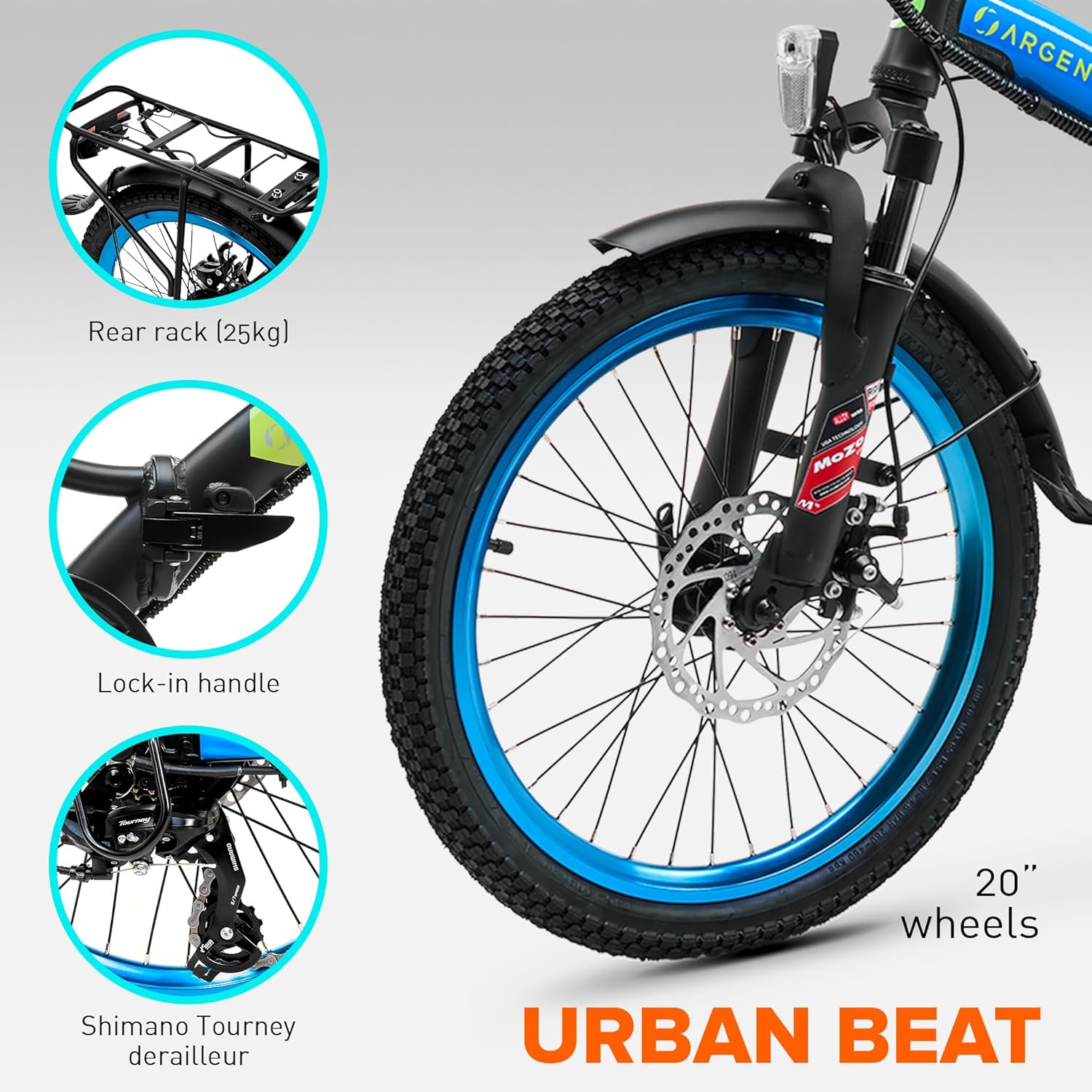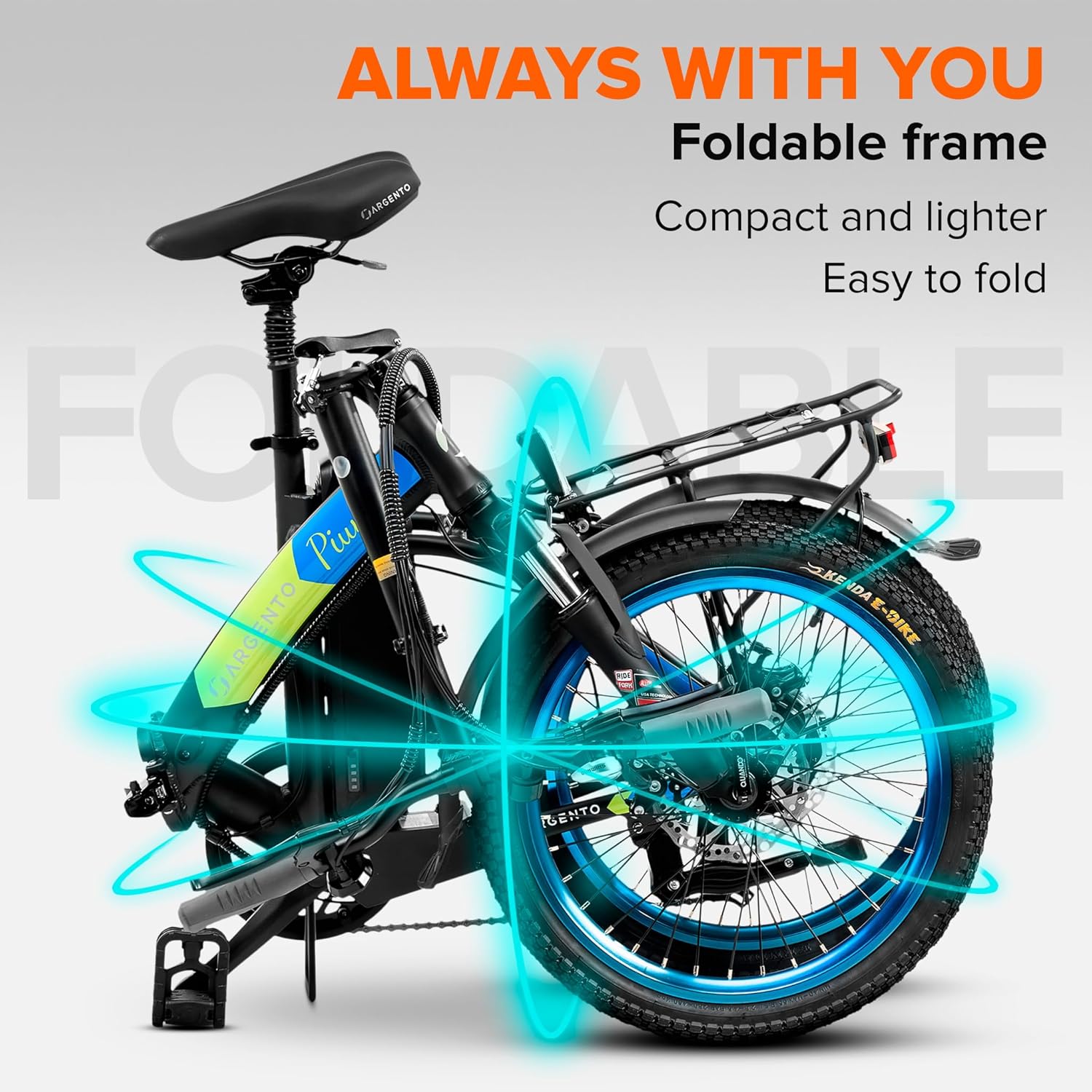 Notre Vélo Électrique Rack Arrière est doté d’un cadre pliable en aluminium, ce qui en fait un véhicule compact et facile à transporter. Cette caractéristique est particulièrement appréciable pour les déplacements multimodaux, permettant de le loger sans difficulté dans un coffre ou de l’emporter dans les transports en commun. Les pneus Kenda de 20 pouces contribuent à une agilité remarquable en milieu urbain, et la légèreté du vélo assure une maniabilité intuitive.