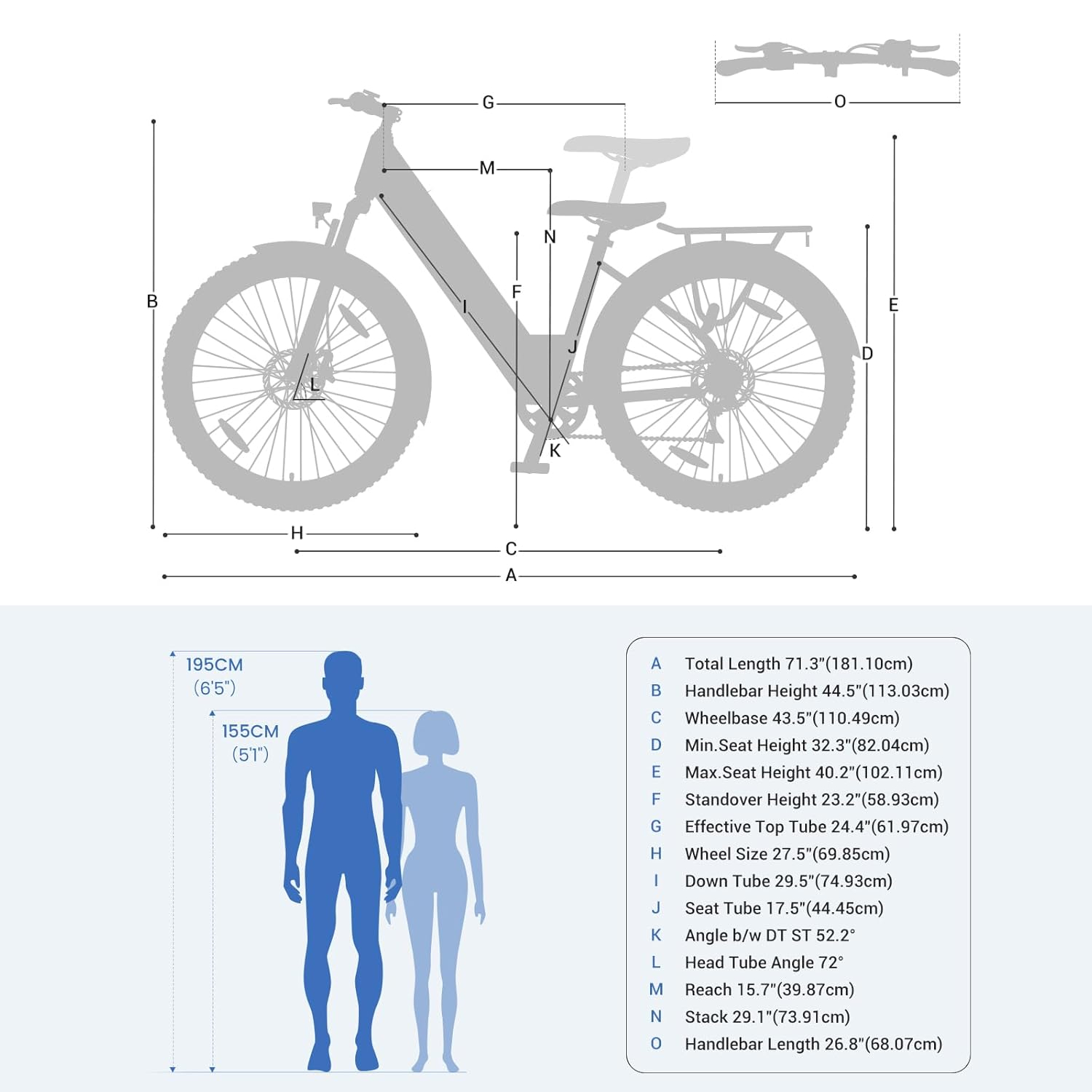Notre vélo à moteur pour utilisatrice randonneuse dispose d’un cadre optimisé pour les adultes mesurant entre 160 et 180 cm. Grâce à sa potence réglable, vous pouvez ajuster la hauteur et l’angle du guidon afin de trouver la posture de conduite la plus confortable et ergonomique, pour des heures de vélo sans inconfort.