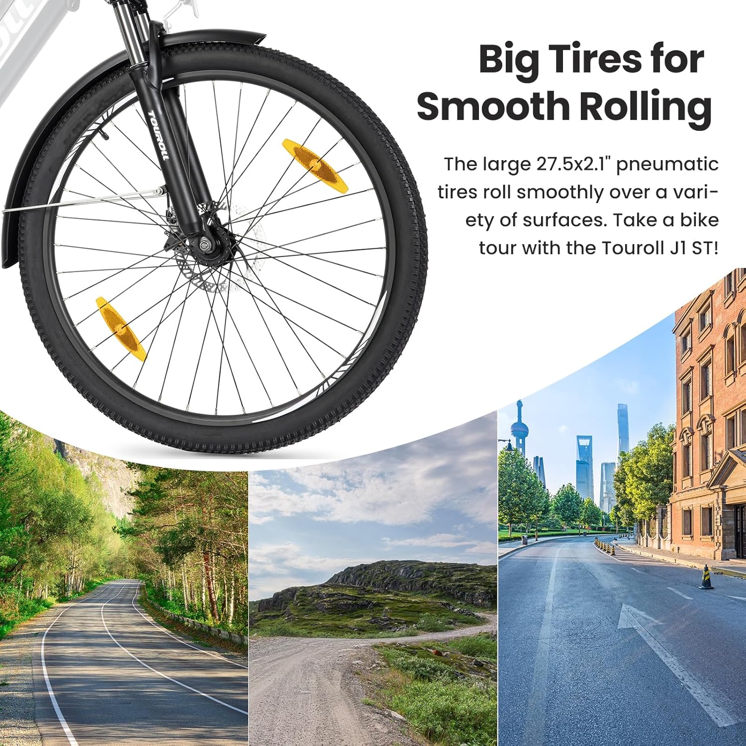 Avec ses pneus larges de 27,5 pouces et sa suspension avant à débattement de 80 mm, notre modèle électrique tout chemin pour cycliste féminine garantit une excellente absorption des chocs et une stabilité remarquable, même sur les routes irrégulières. La fourche verrouillable vous permet d’adapter la suspension selon le terrain, pour une conduite souple et adaptée à chaque situation.