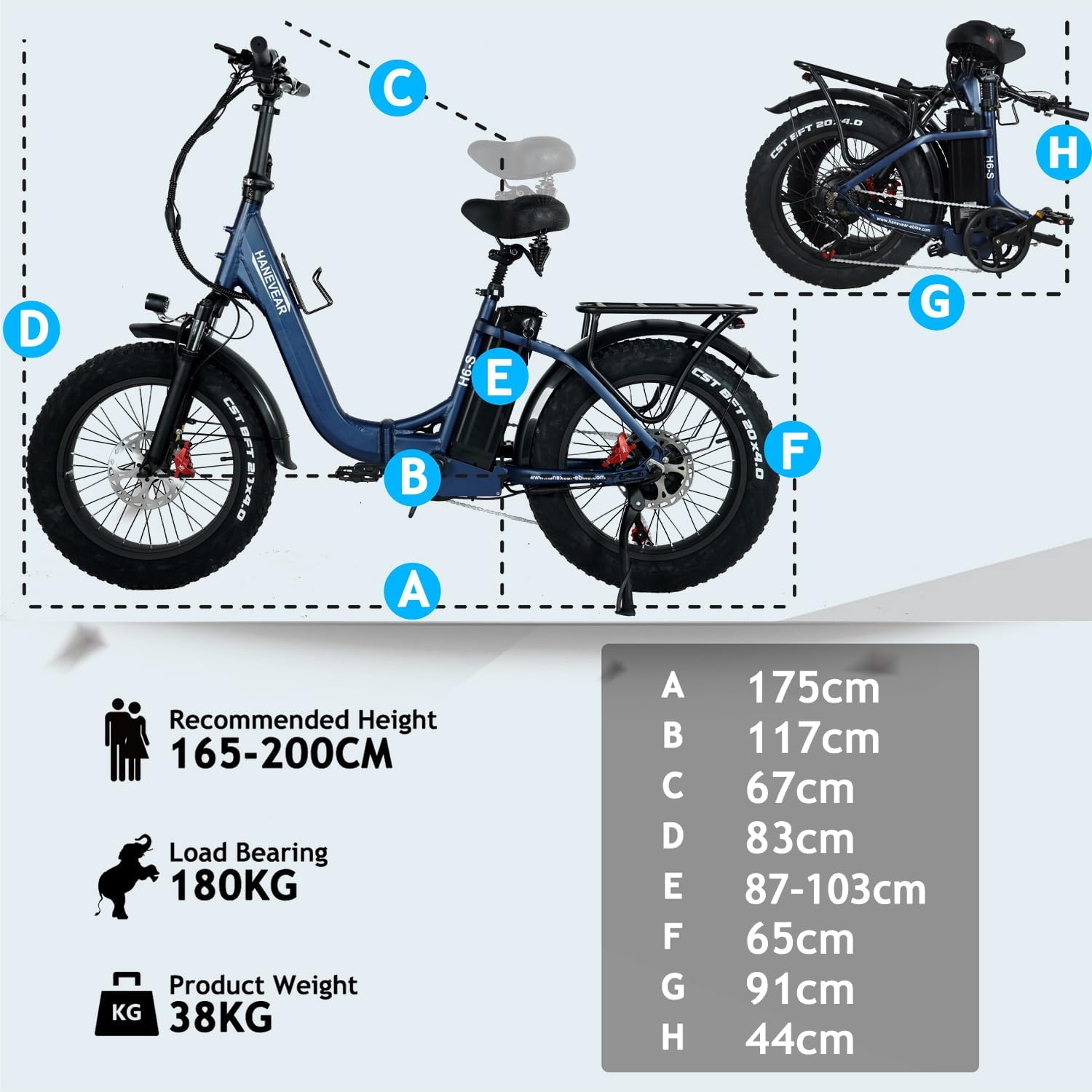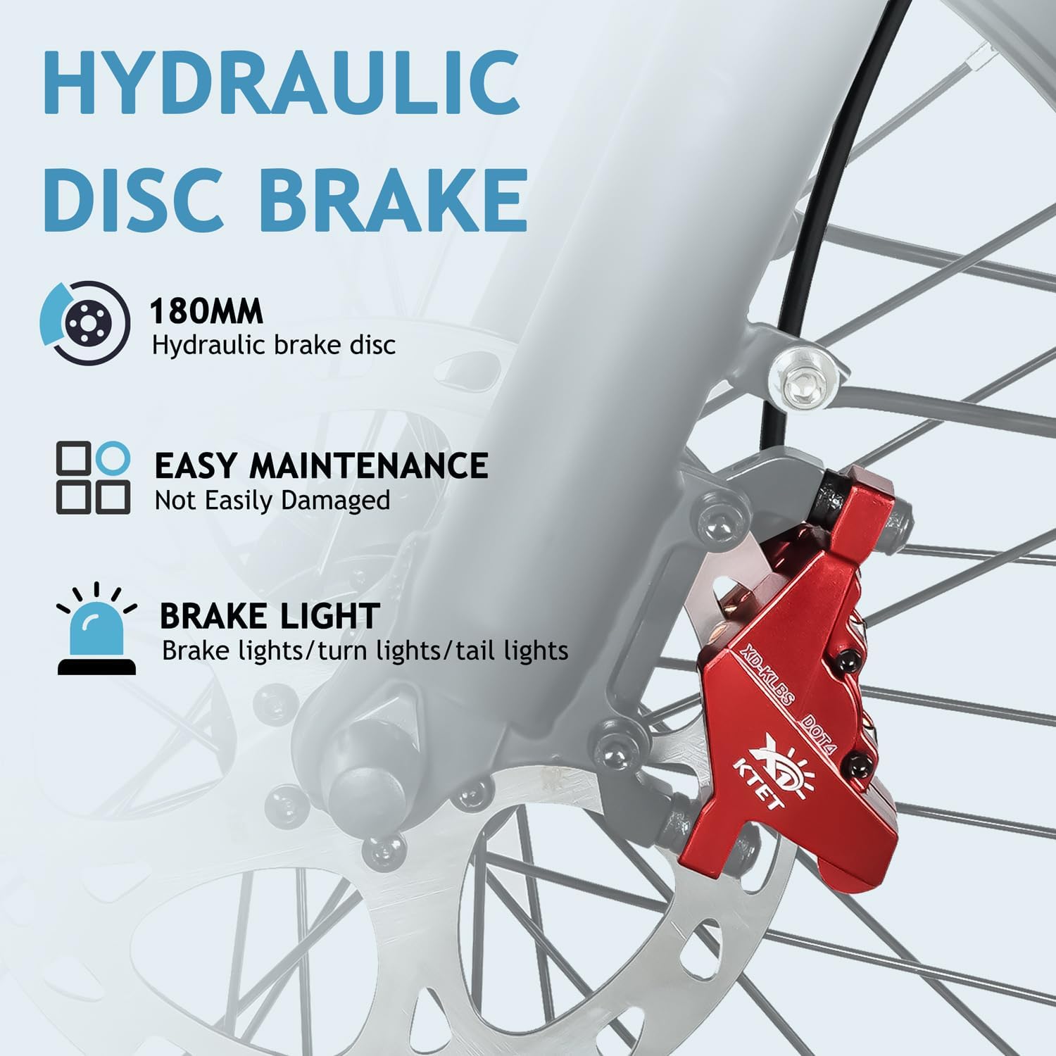 Notre vélo est conçu pour la sécurité et le confort de l’utilisateur. Il est équipé de freins à disque hydrauliques de 180 mm, offrant un freinage puissant et fiable dans toutes les conditions. Les pneus de 20 pouces, de type « Fat Bike », sont robustes et assurent une adhérence exceptionnelle sur diverses surfaces, des pistes cyclables aux chemins moins réguliers. La suspension de fourche améliore le confort en absorbant les chocs, rendant chaque trajet plus agréable. Nous avons mis l’accent sur des matériaux de qualité pour garantir la longévité et la performance de ce vélo.