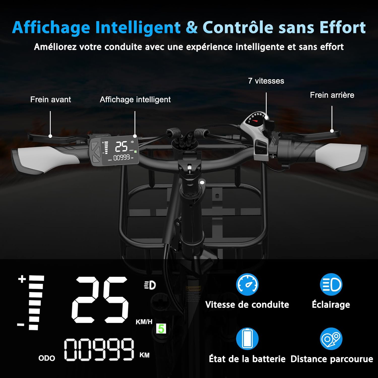 Nous avons intégré un moteur sans balais de 250 W à notre vélo à assistance électrique, lui conférant une vitesse maximale régulée de 25 km/h, en parfaite conformité avec les réglementations en vigueur. Ce moteur, associé à une transmission à 7 vitesses, garantit une progression dynamique et une adaptation aisée aux différents profils de terrain. L’affichage numérique intégré fournit des informations précises en temps réel sur votre trajet.