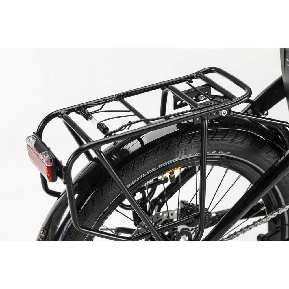 Autres informations : Dimensions pliées 950 x 770 x 500 mm, pneus 20×2,125 Big Apple, selle Royal 8129, moyeux Shimano Tourney TX Series à fixation rapide