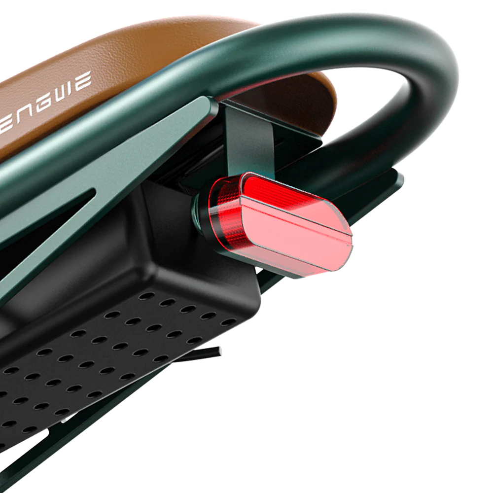 Roulez en toute sécurité grâce à son phare LED puissant et son feu stop arrière. Son système de freinage à disque mécanique de 160 mm à l’avant et à l’arrière assure un arrêt rapide et efficace dans toutes les conditions.