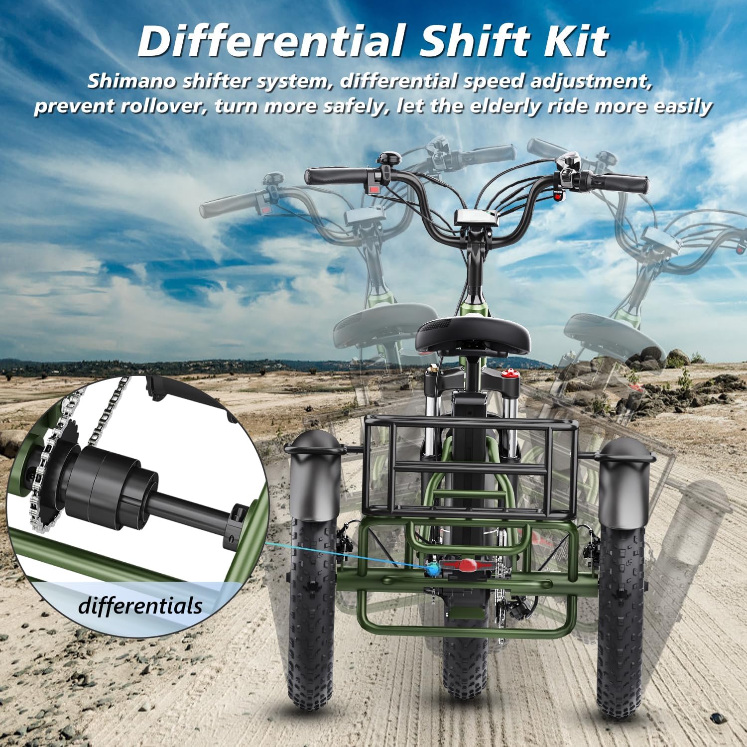 Grâce à ses trois roues à propulsion assistée, ce vélo vous assure une stabilité remarquable, même sur des surfaces difficiles comme le sable, la neige ou les chemins accidentés. Ses pneus extra-larges 20×4 pouces, combinés à une double suspension et des freins à disque performants, garantissent une excellente tenue de route et un amorti optimal, quelles que soient les conditions.
