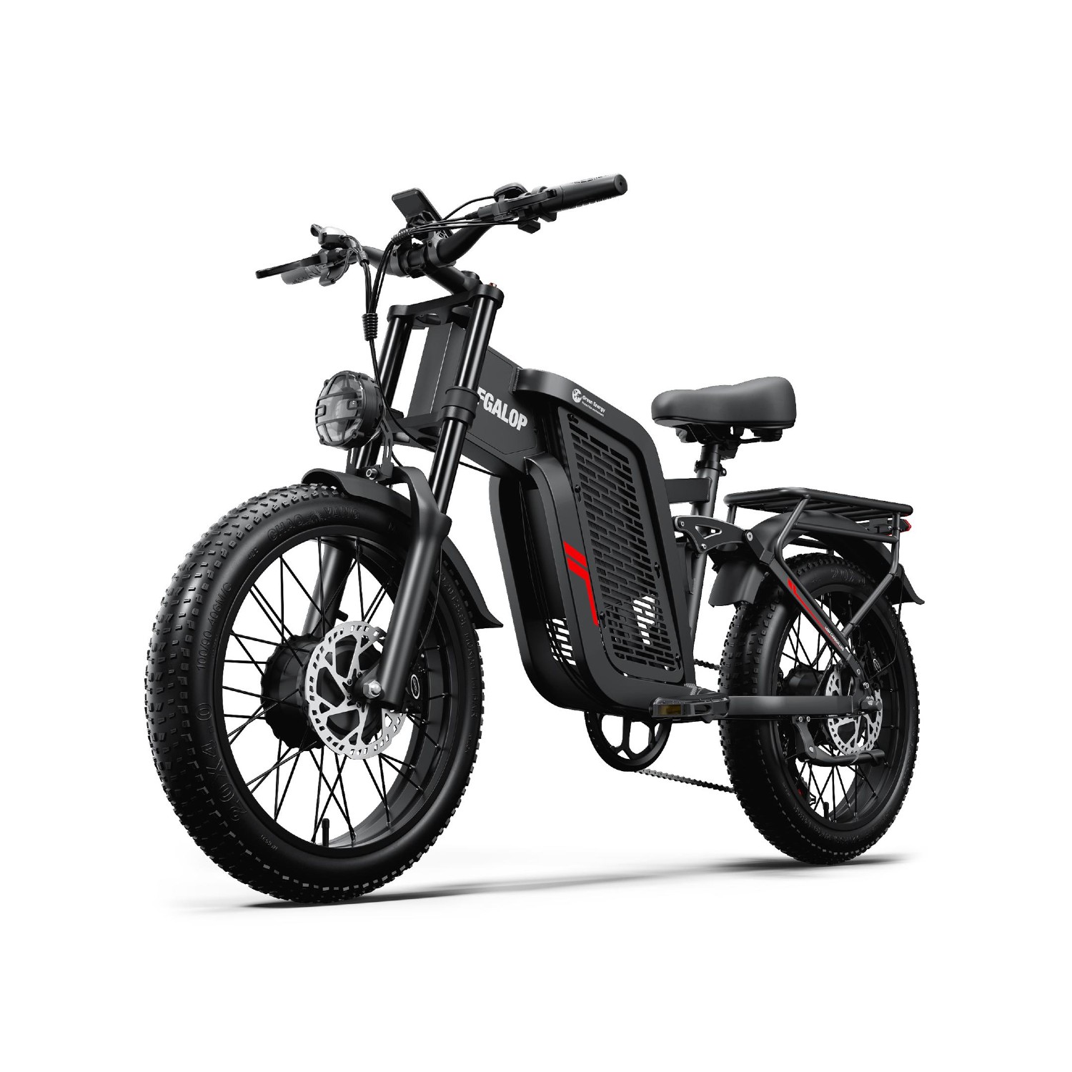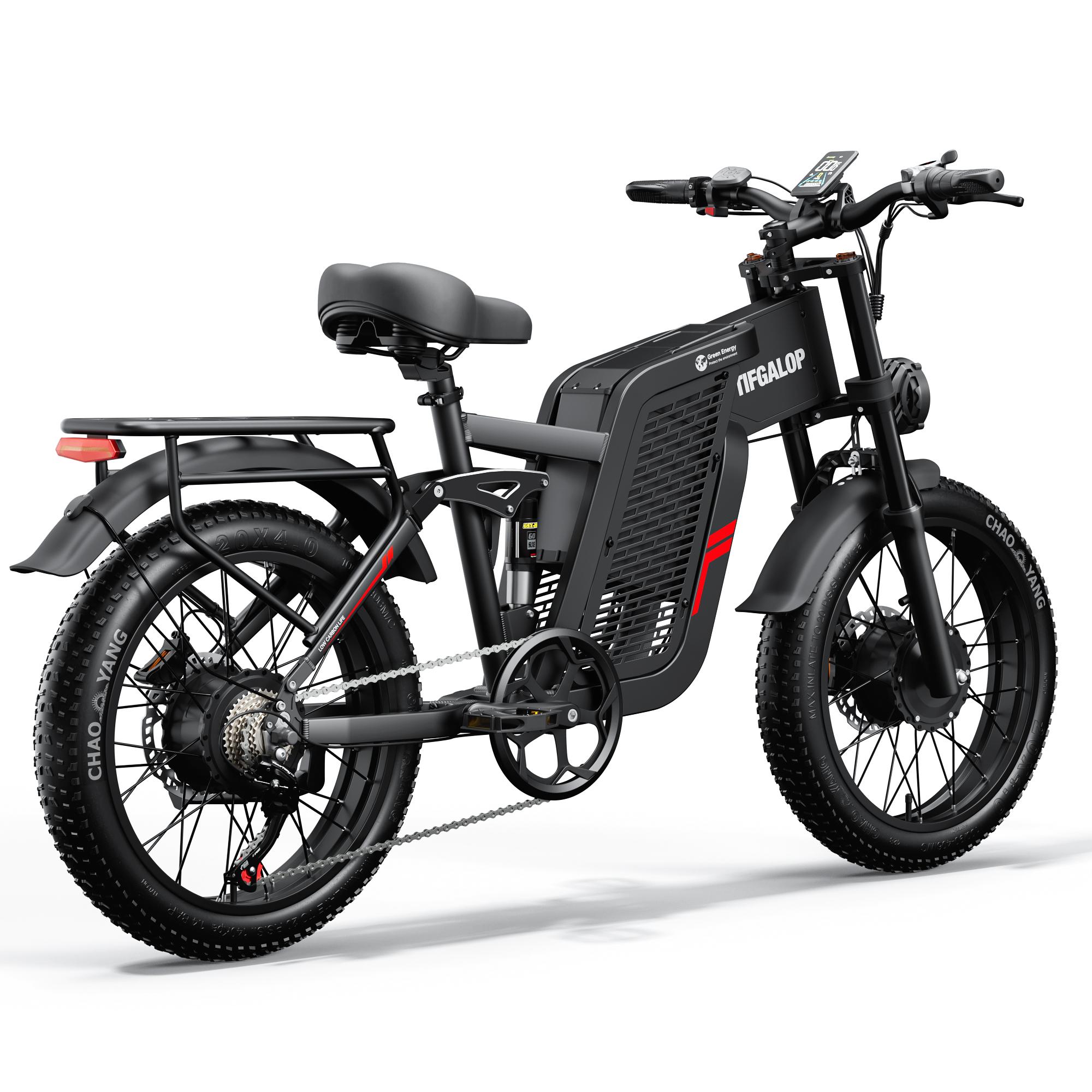 Le Vélo Électrique Double Moteur Tout-Terrain est équipé d’un système de suspension avant et arrière. Les amortisseurs réduisent les vibrations et absorbent efficacement les chocs, garantissant une conduite stable sur des chemins accidentés et en tout-terrain.