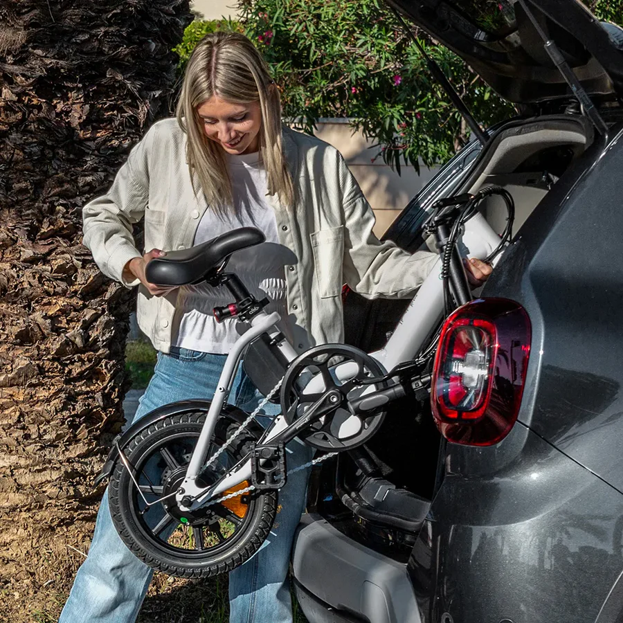 Grâce à son format de cycle électrique de poche, ce modèle est idéal pour ceux qui souhaitent se faufiler facilement dans la circulation ou le transporter dans les transports en commun. Son design repliable permet de le ranger aisément chez vous, sous un bureau ou dans le coffre d’une voiture, ce qui en fait une solution idéale pour vos trajets quotidiens en ville.