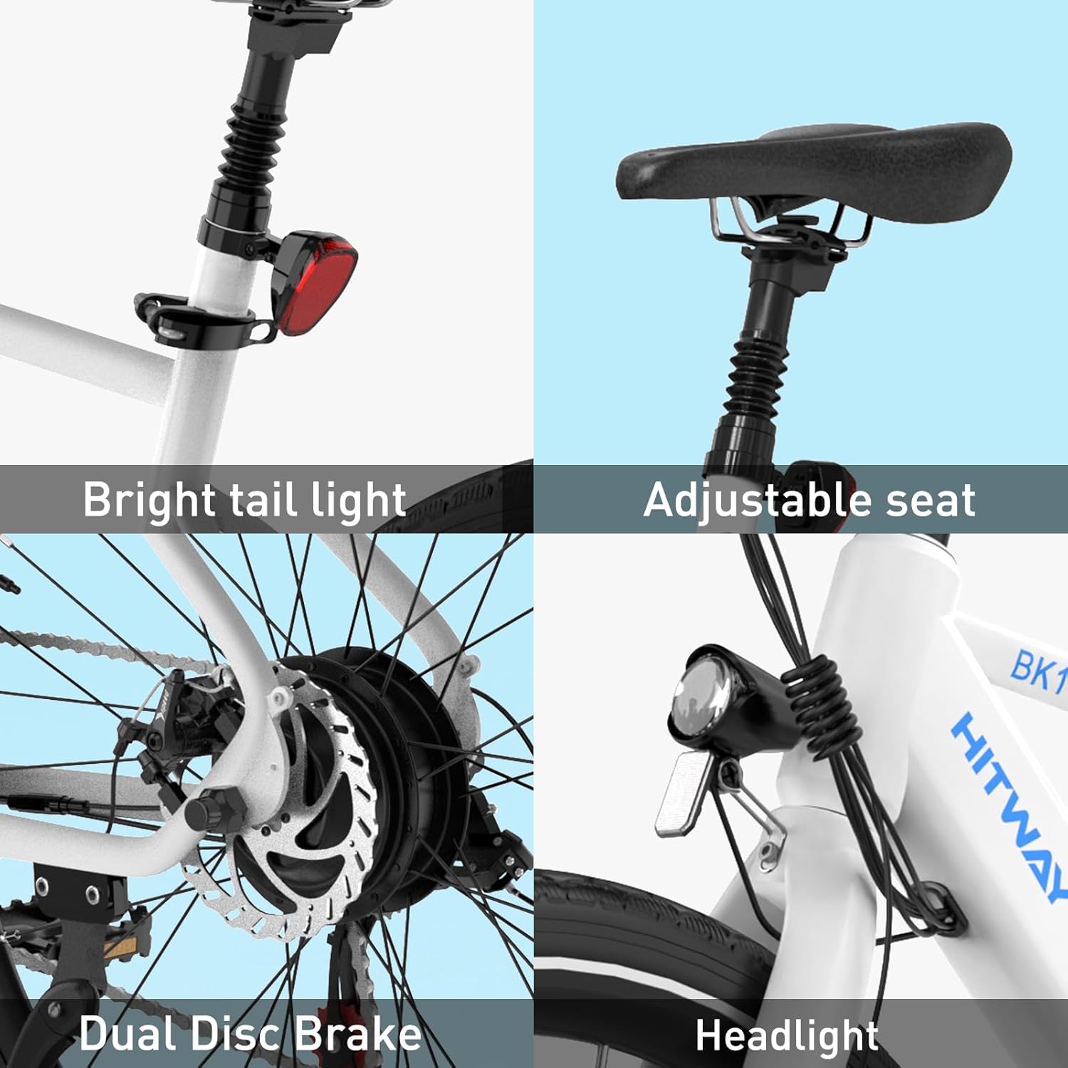 Conçu en alliage d’aluminium de qualité supérieure, notre cycle électrique à assistance combine légèreté et résistance. La suspension arrière et le siège à absorption des chocs assurent une conduite douce et agréable, même sur les routes les plus accidentées, tout en maintenant une stabilité optimale.