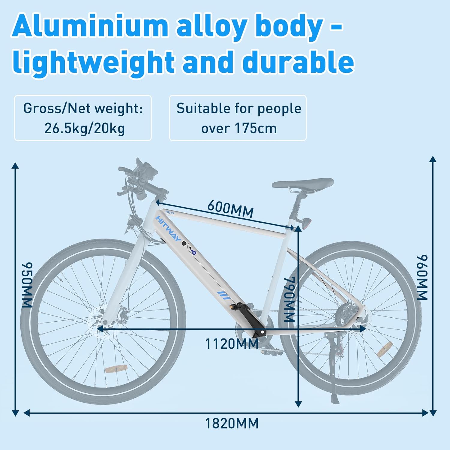Avec une structure optimisée pour un déploiement de 1810mm x 680mm x 1110mm, notre bicyclette VAE convient parfaitement aux adultes mesurant entre 1m60 et 1m90. Le cadre réglable permet à chacun d’adapter sa position de conduite pour un confort maximal, quelle que soit votre morphologie.