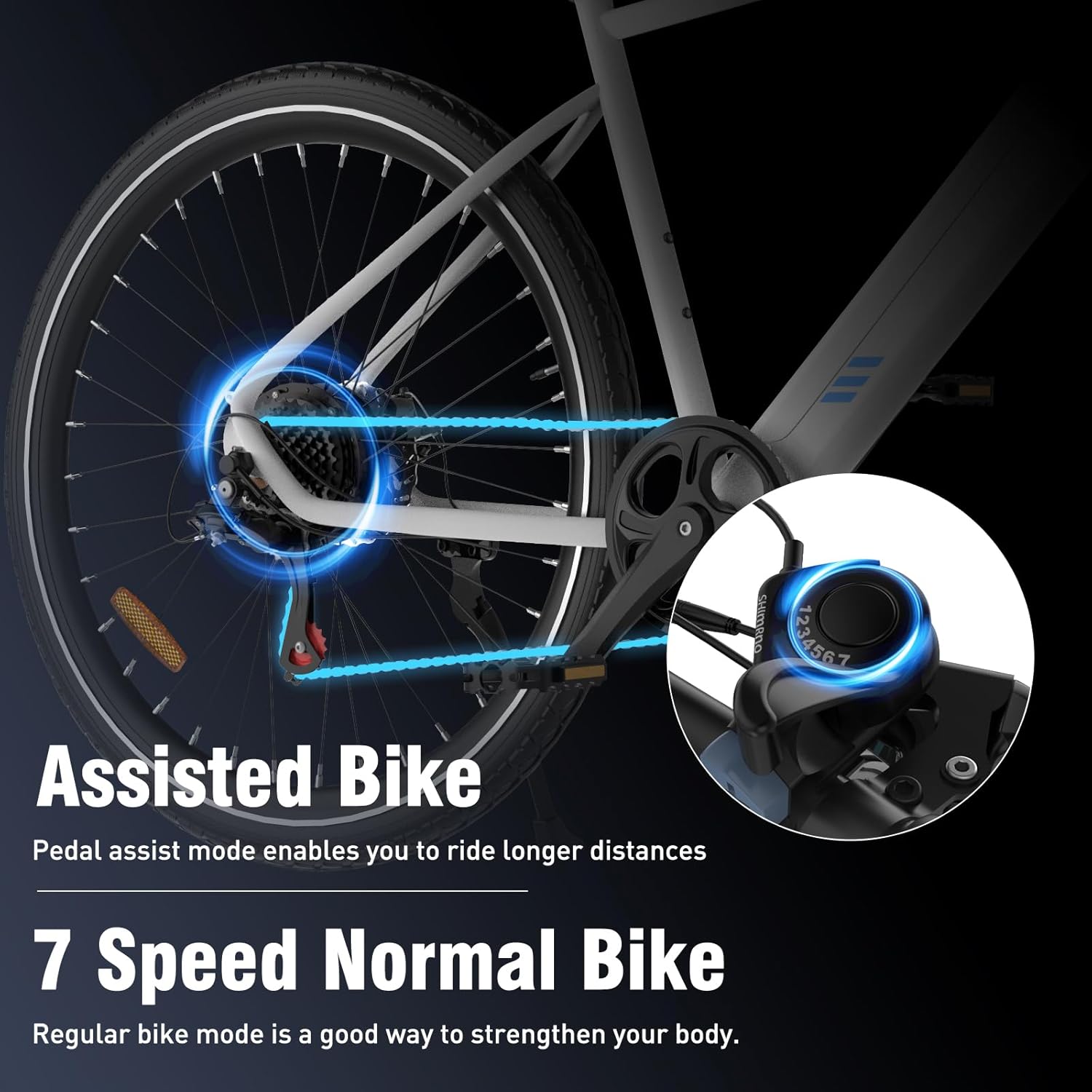 Notre vélo à assistance électrique est équipé d’un moteur performant de 250W, vous permettant d’atteindre facilement une vitesse de 25 km/h. Grâce à son mode d’assistance intelligent, vous bénéficiez d’une accélération fluide et d’une maîtrise parfaite sur tous types de terrains, rendant chaque trajet plus rapide et moins fatigant.