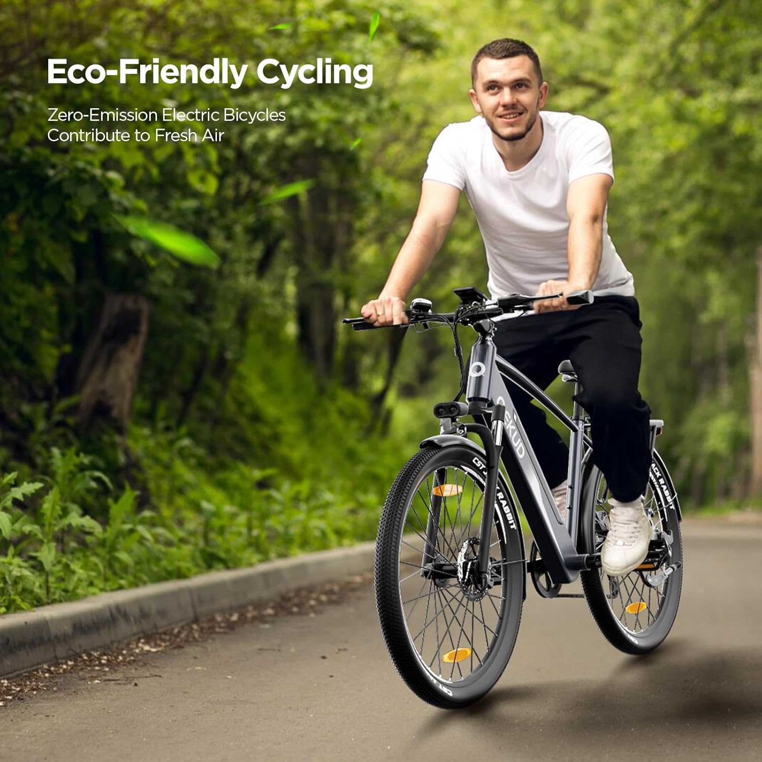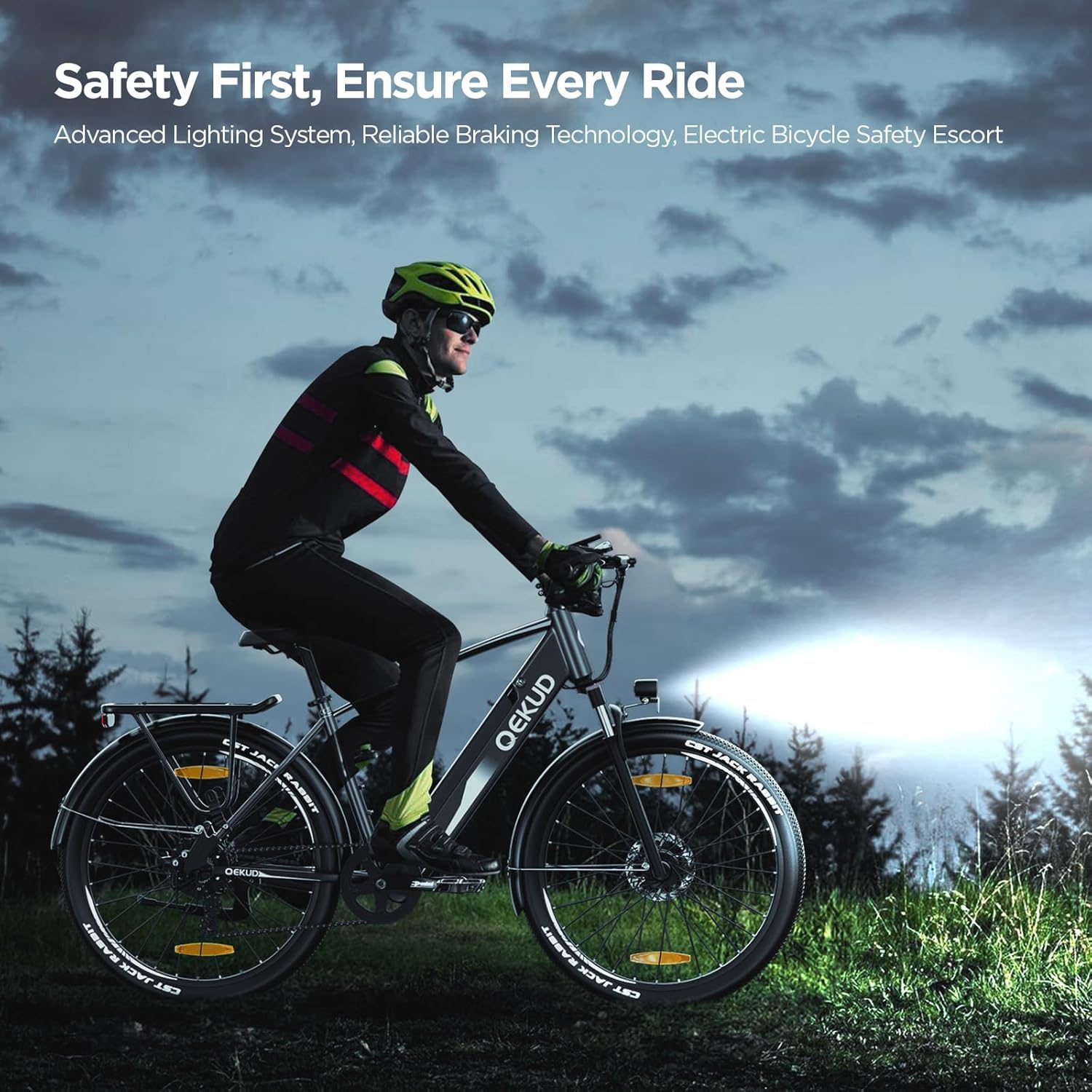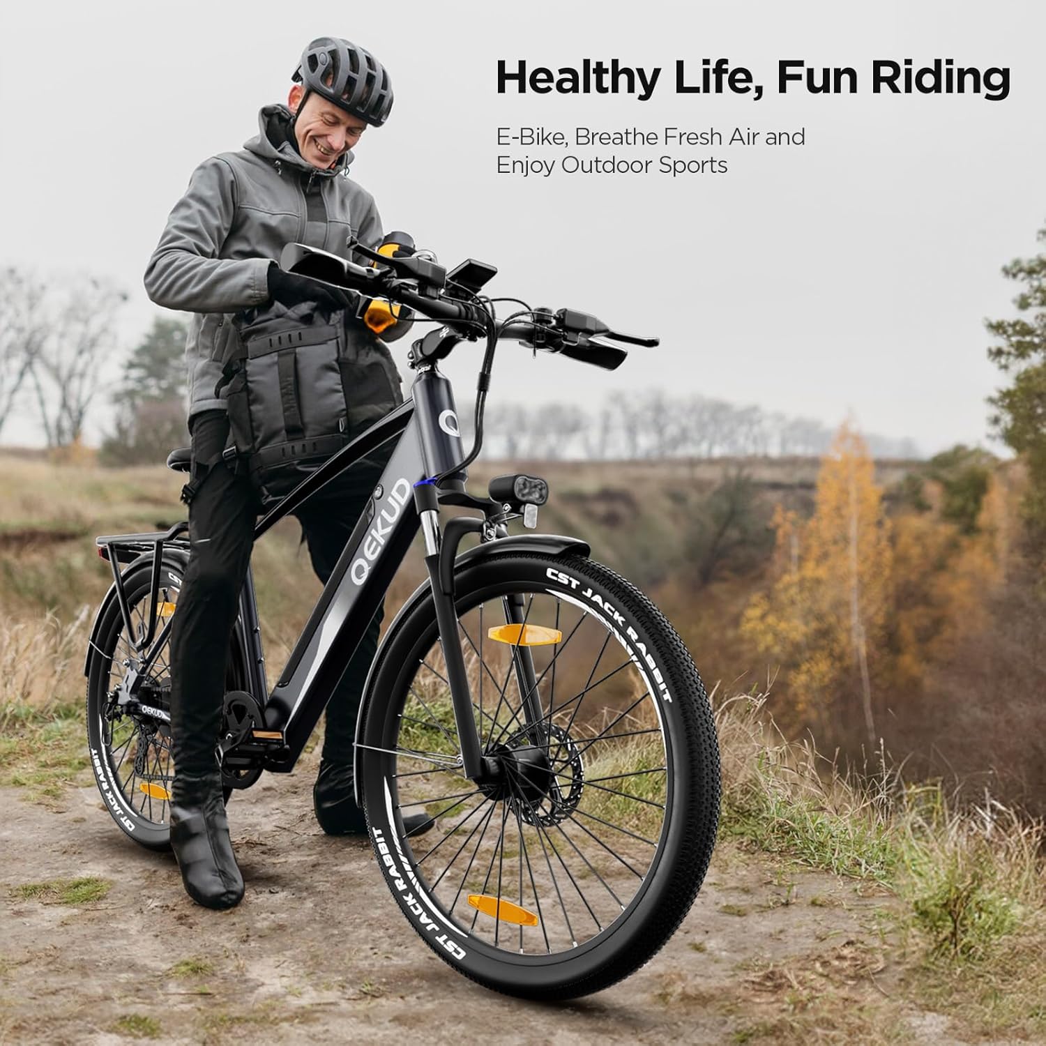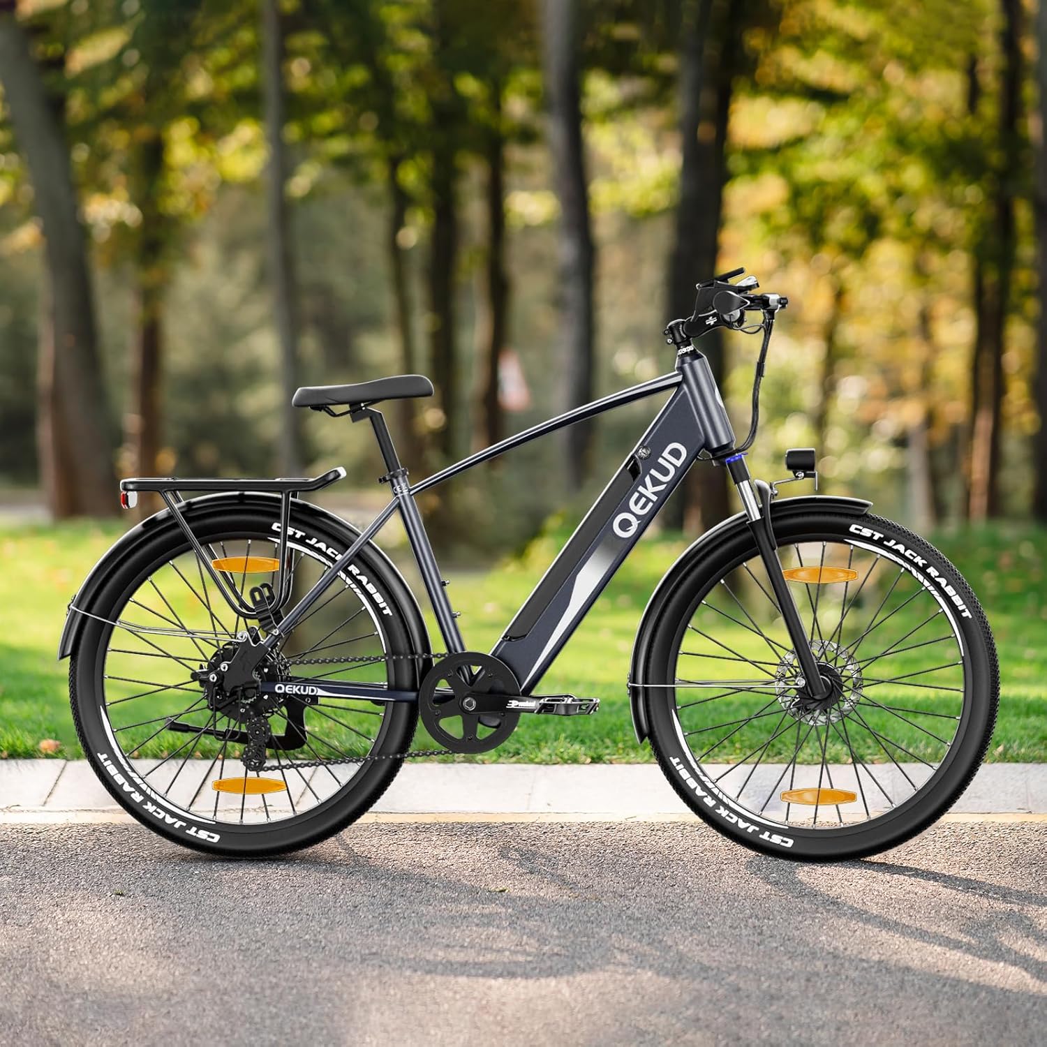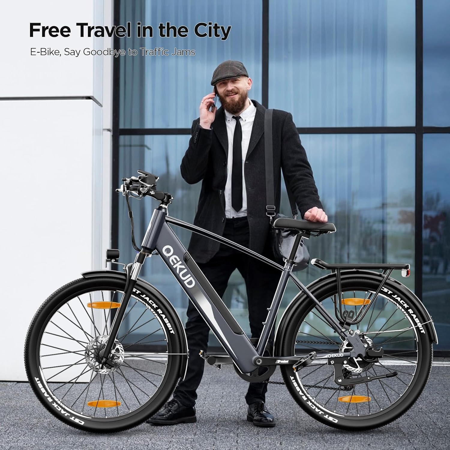 Doté d’une fourche suspendue et d’une assistance vélo urbaine électrique, ce deux-roues absorbe efficacement les irrégularités de la route. Sa selle ergonomique en silicone et sa tige de selle réglable assurent une posture agréable sur de longues distances. L’ensemble est pensé pour offrir une conduite douce, silencieuse et sans secousses, quel que soit le type de revêtement emprunté.