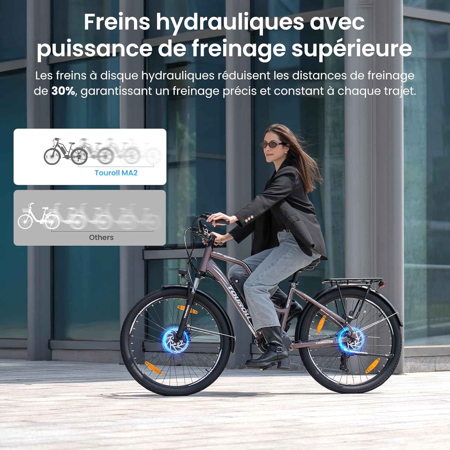 La sécurité de nos utilisateurs est primordiale, c’est pourquoi notre VTC Électrique 100Km est équipé de freins à disque hydrauliques haute performance. Ce système de freinage avancé réduit la distance de freinage jusqu’à 30 % par rapport aux systèmes mécaniques traditionnels, vous offrant une maîtrise accrue et une plus grande tranquillité d’esprit. Que vous circuliez en ville ou que vous affrontiez des routes sinueuses, ces freins assurent une performance constante et fiable dans toutes les conditions météorologiques. Leur efficacité contribue à une expérience de conduite plus sereine, même en cas d’arrêt d’urgence, renforçant ainsi la sécurité globale de notre VAE longue distance.