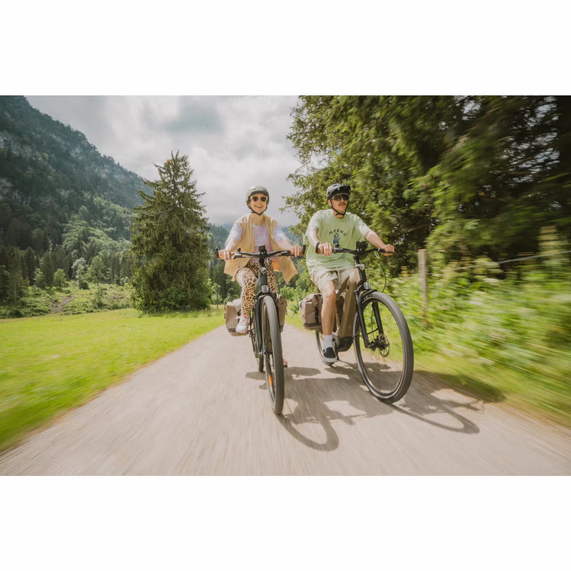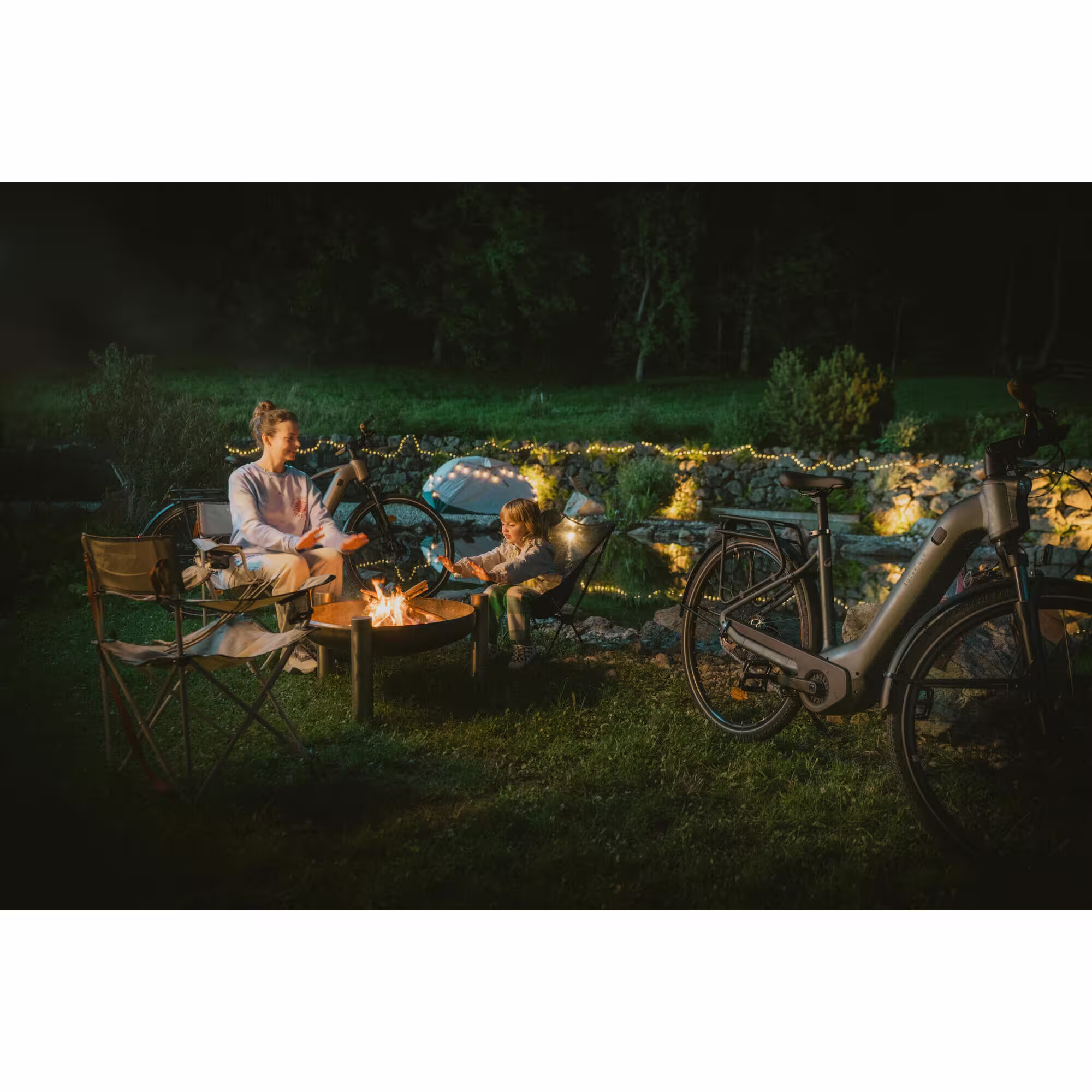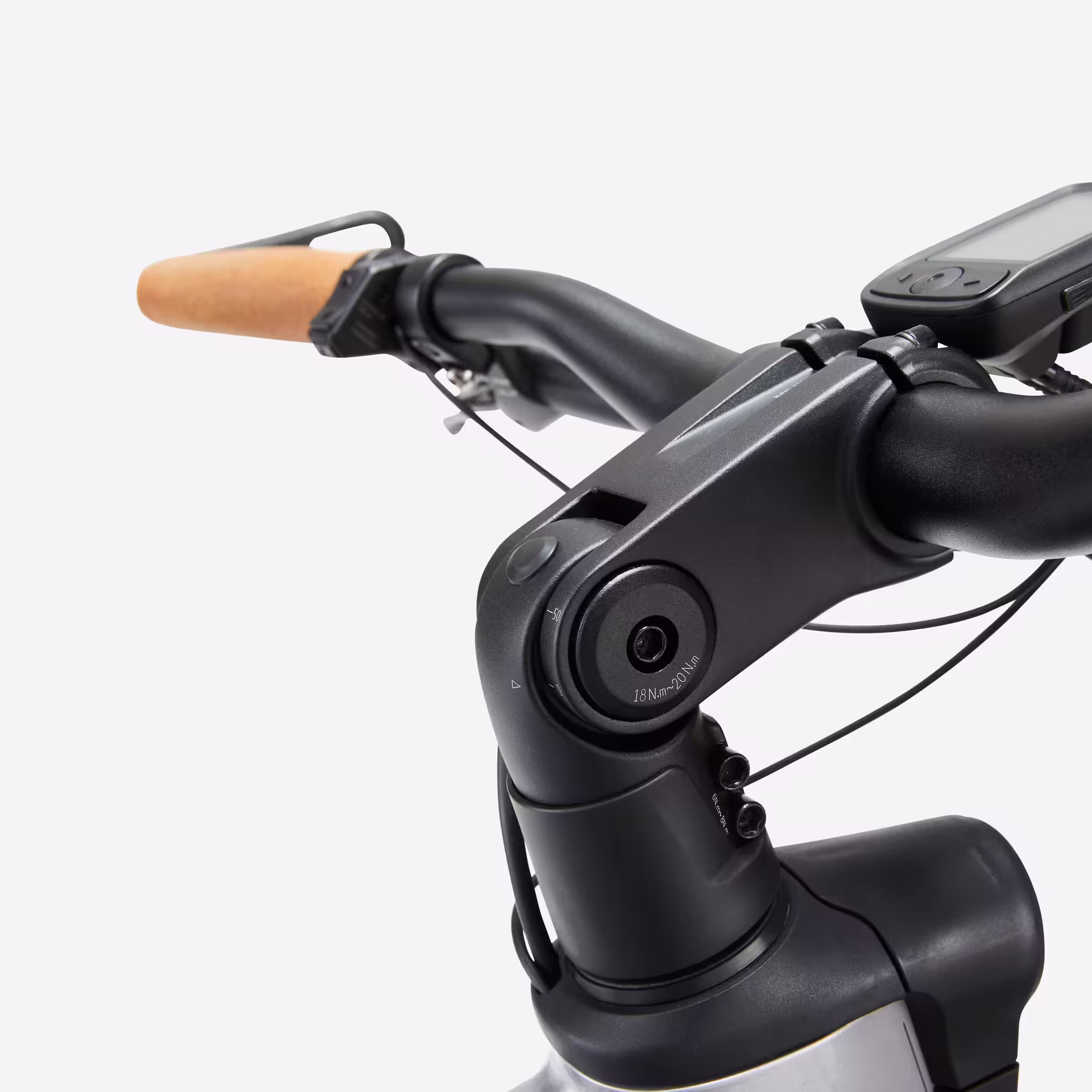 Restez connecté avec l’application gratuite DECATHLON RIDE, qui vous offre des statistiques avancées sur vos parcours, la gestion optimisée de l’assistance électrique en mode automatique, et la possibilité de discuter avec nos équipes pour obtenir des conseils. L’éclairage avant de 30 lux et arrière de 3 candelas, alimenté par la batterie du vélo, assure votre visibilité et votre sécurité de nuit. Enfin, notre porte-bagages compatible MIK supporte jusqu’à 27 kg, incluant un siège bébé, et est conçu pour accueillir toute notre gamme de bagages, augmentant ainsi la polyvalence de votre équipement.