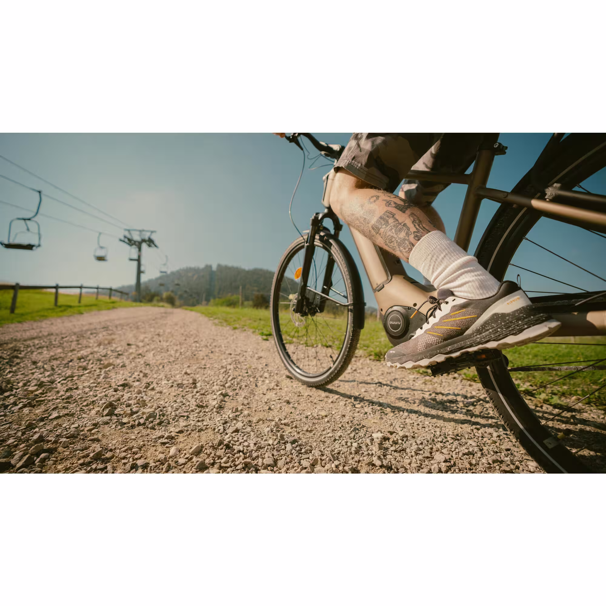 Notre vélo électrique mixte tout chemin a été conçu pour s’adapter à toutes vos envies d’évasion. Grâce à son double moteur Owuru, doté d’une transmission à variation continue, le changement de vitesses devient entièrement automatique, vous assurant une fluidité de pédalage exceptionnelle. Que vous rouliez sur route ou sur chemin, notre conception permet une expérience de conduite remarquablement adaptative. Vous profiterez d’un couple moteur généreux de 65 Nm, vous permettant de gravir les côtes sans aucun effort, tout en conservant une grande aisance dans votre progression.