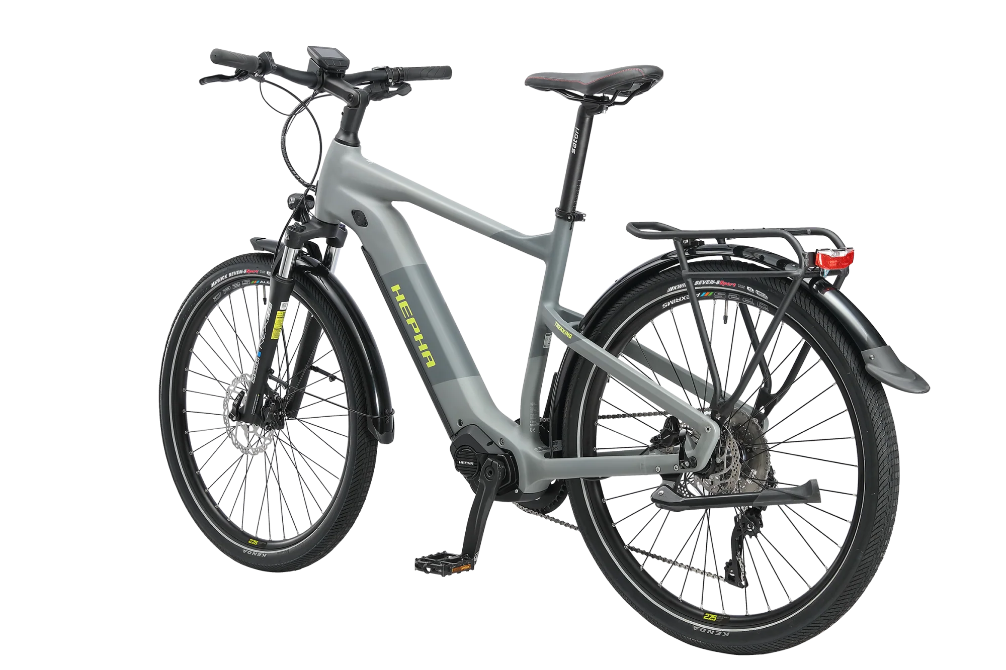 Ce VTT motorisé à 100 Nm est équipé d’un éclairage automatique géré par capteur de luminosité, d’un porte-bagages compatible MIK HD, et de pneus Kenda 27,5″ x 2,2″ pour une adhérence optimale. Le poids total autorisé atteint 130 kg, avec un poids net du vélo de 26,5 kg.