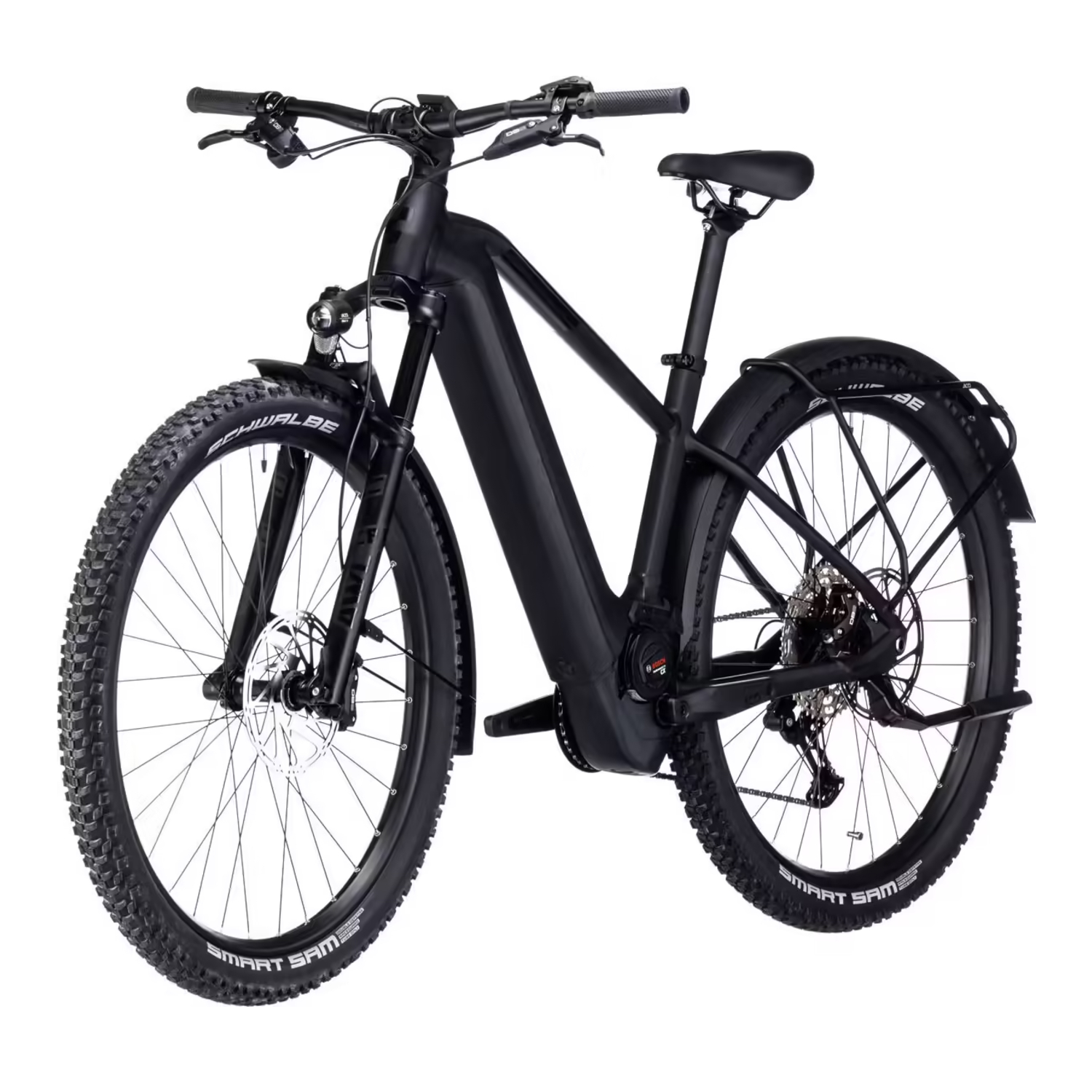 Grâce à son équipement complet (garde-boues, porte-bagages, béquille, éclairage intégré), notre VTT Électrique avec Remorque est prêt pour les trajets du quotidien comme pour les excursions du week-end. Sa géométrie Agile Ride inspire confiance, tandis que les freins à disque hydrauliques Sram DB8 vous offrent un freinage optimal, même sur sol mouillé. Chaque détail est pensé pour conjuguer confort, sécurité et efficacité.