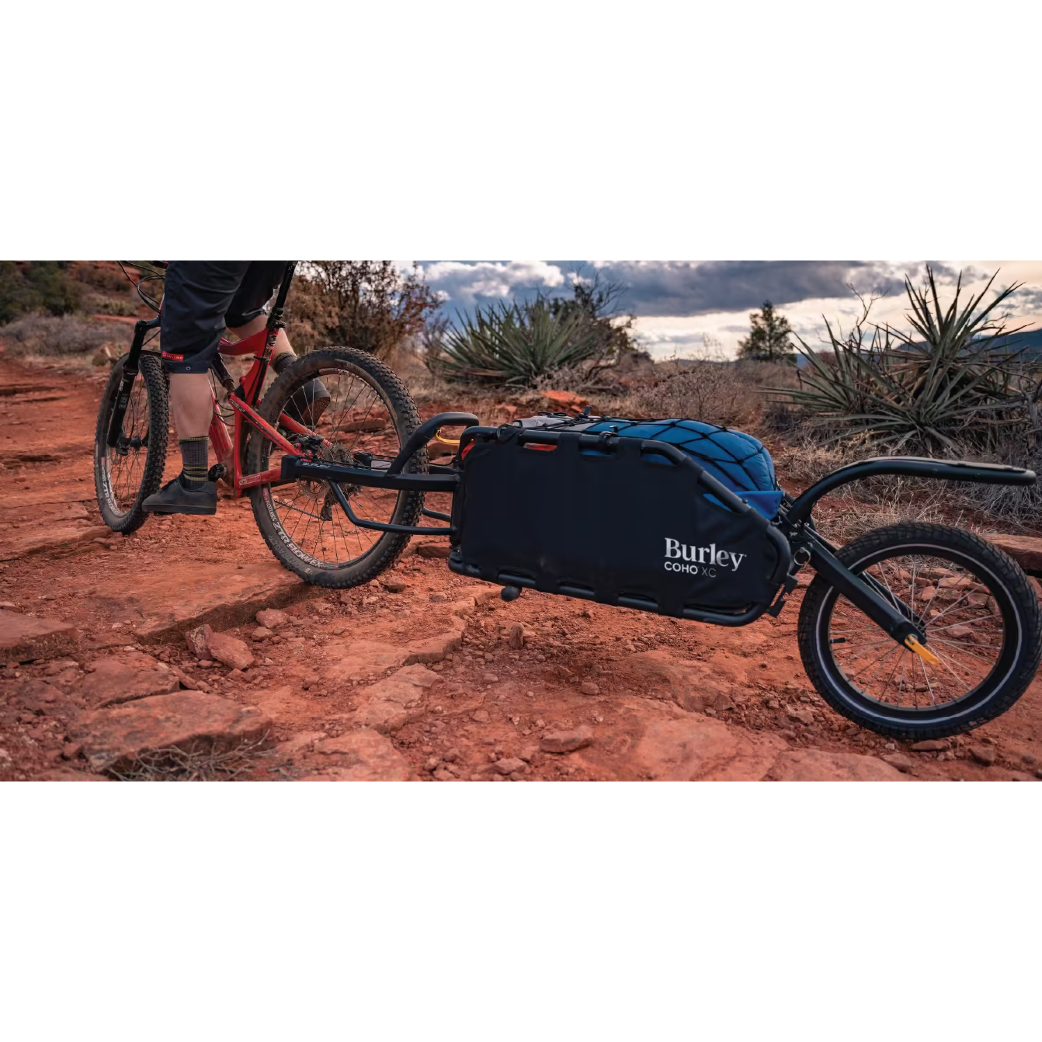 La remorque repose sur un châssis en aluminium 6061-T6, alliant solidité et légèreté. Elle est livrée avec un filet de chargement, une béquille réglable en hauteur, et un drapeau de sécurité, pour une expérience aussi pratique que sécurisée. Sa compatibilité avec les axes QR 5mm et Thru Axle 12 mm la rend adaptée à un large éventail de configurations.
