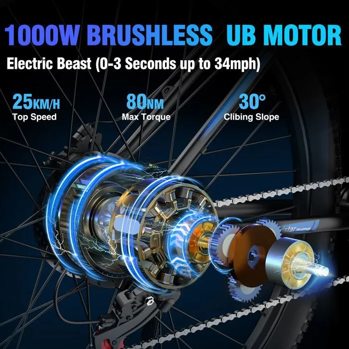 VTT Électrique 1000W avec Performance et Endurance Tout-Terrain