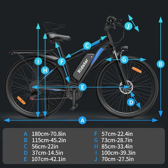 Notre VTT Électrique est conçu pour s’adapter à une large gamme d’utilisateurs, avec une taille recommandée de 1,63 m à 1,90 m. Le cadre en acier à haute teneur en carbone est conçu pour offrir une position de conduite confortable et ergonomique, minimisant la fatigue lors des longs trajets. Avec un poids de produit de 75 lb et une capacité de poids de 330 lb, notre vélo électrique s’adapte à différents gabarits, offrant une expérience de conduite stable et sécurisée à tous les cyclistes.