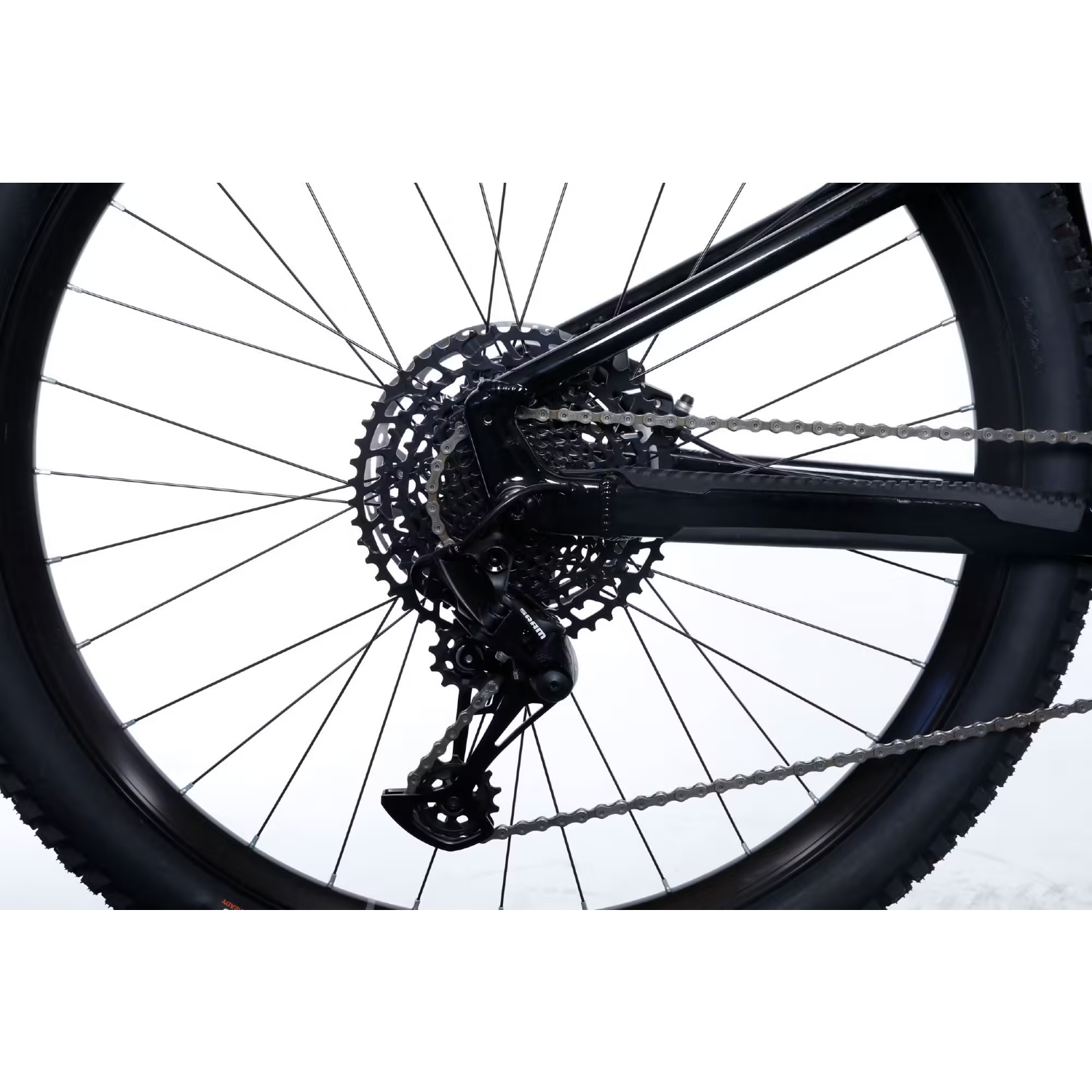 Le confort et la capacité d’adaptation sont au cœur de notre conception, avec une suspension intégrale garantissant une absorption optimale des chocs. La fourche et l’amortisseur, issus de l’expertise RockShox, offrent un débattement généreux pour affronter les descentes techniques et les terrains les plus exigeants. La transmission à 12 vitesses, signée Sram SX Eagle, assure un changement de vitesses précis et fluide, vous permettant de trouver toujours la bonne cadence. L’ensemble est complété par des composants robustes, conçus pour durer et performer dans les conditions les plus rudes.