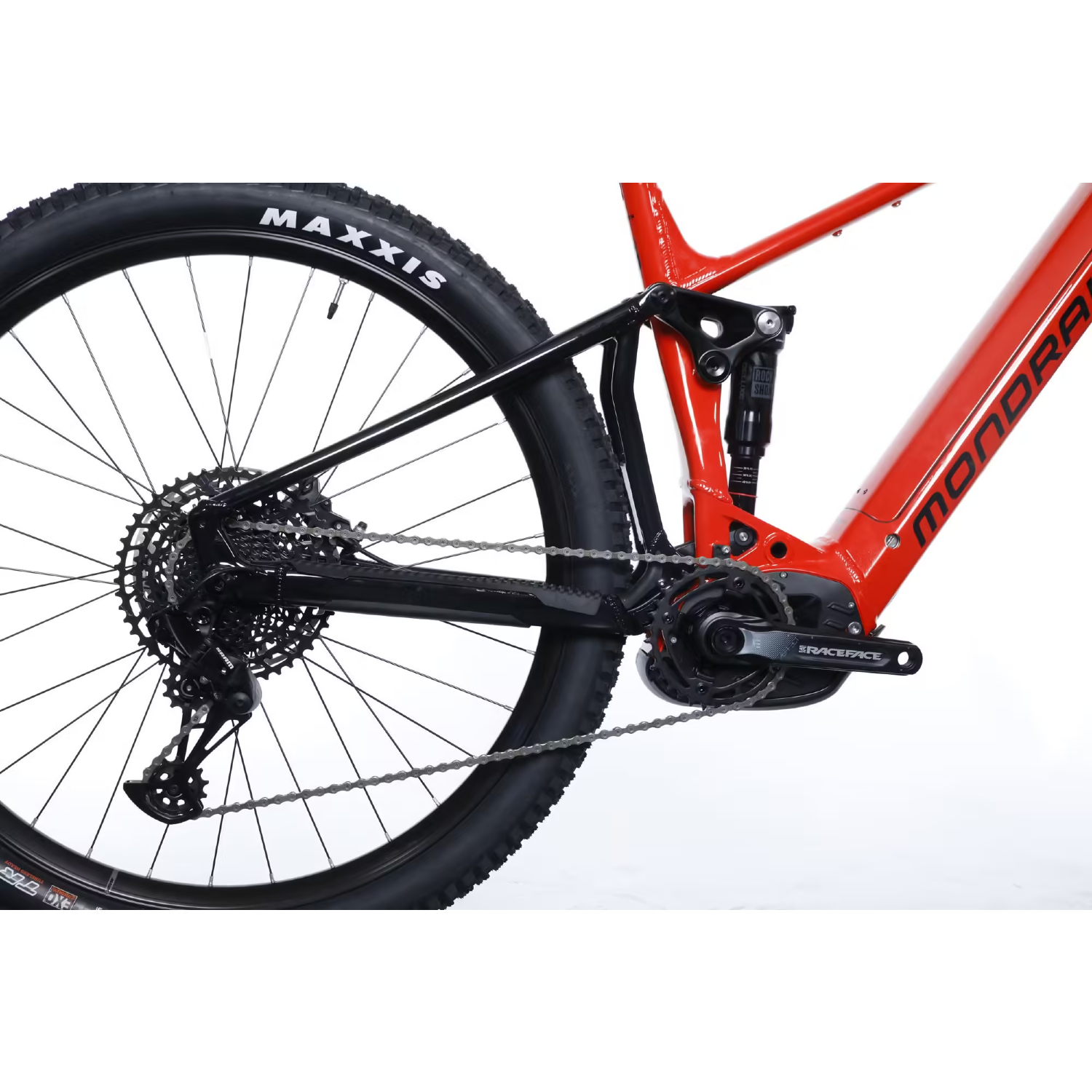 La sécurité et le contrôle sont primordiaux sur les sentiers, c’est pourquoi notre VTT à motorisation électrique intègre des freins à disque hydrauliques puissants. Les freins SRAM DB8, avec leurs étriers à 4 pistons, garantissent un freinage mordant et fiable en toutes circonstances, même sur les pentes raides. Les roues, d’un diamètre de 29 pouces, sont montées avec des pneus Maxxis Rekon de 2,6 pouces de large, offrant une adhérence exceptionnelle et une stabilité remarquable. Cette combinaison assure une maîtrise parfaite, quel que soit le type de terrain rencontré, renforçant votre confiance sur les parcours techniques.