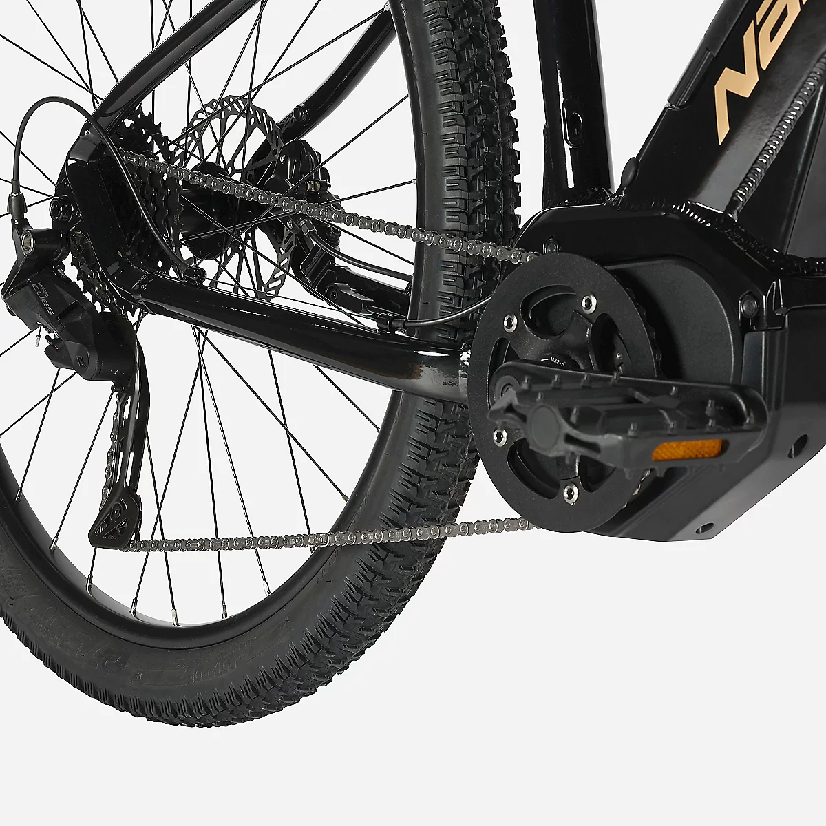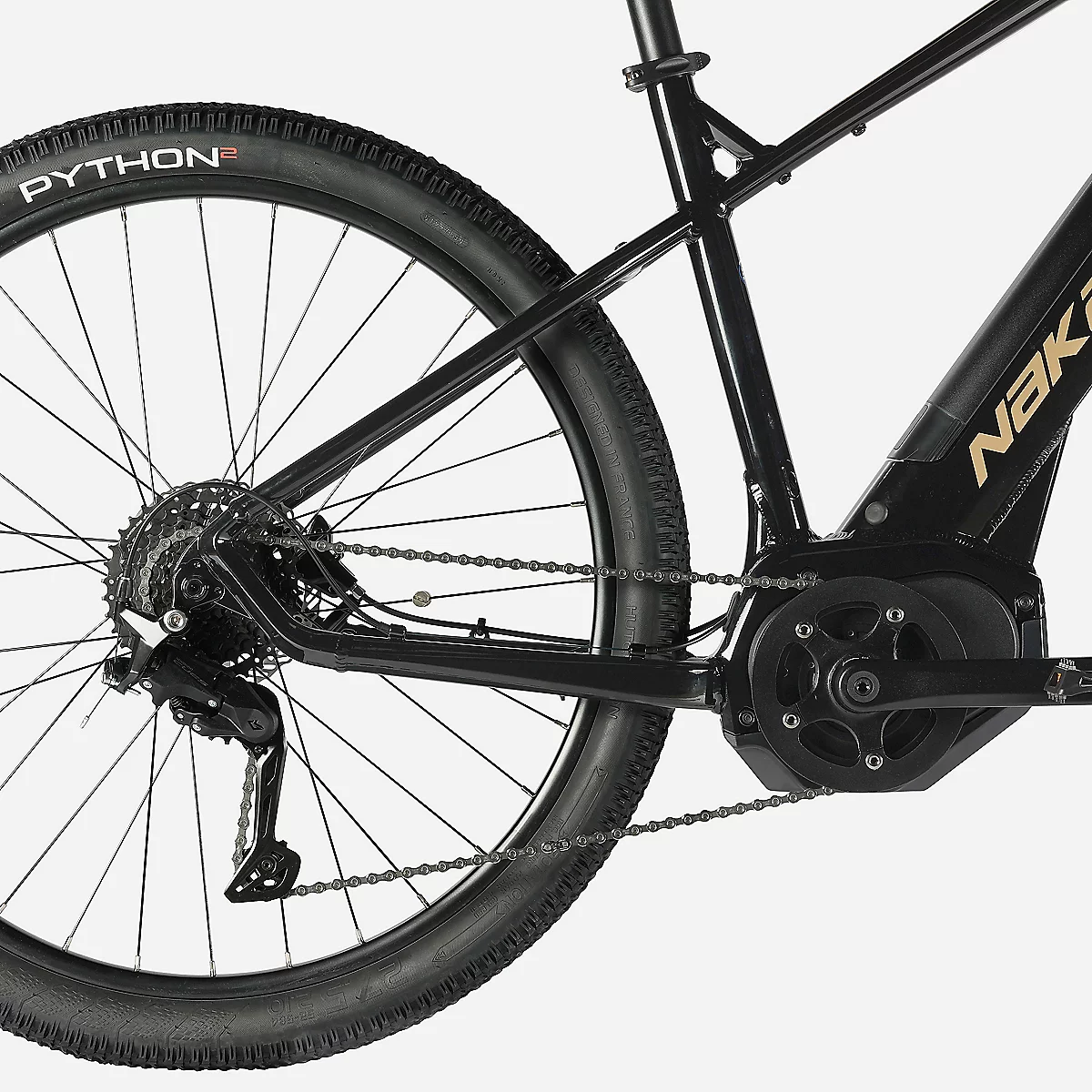 Le cadre en aluminium de 27,5 pouces, avec sa batterie intégrée, garantit une excellente répartition du poids et une grande maniabilité. La fourche suspendue de 120 mm de débattement absorbe efficacement les chocs et les imperfections du terrain, assurant un confort optimal même sur les parcours les plus exigeants. Le display couleur D18 vous permet de visualiser rapidement les quatre niveaux d’assistance disponibles, dont le mode automatique NAKA SMART, facilitant ainsi la gestion de votre effort et de l’autonomie de la batterie.