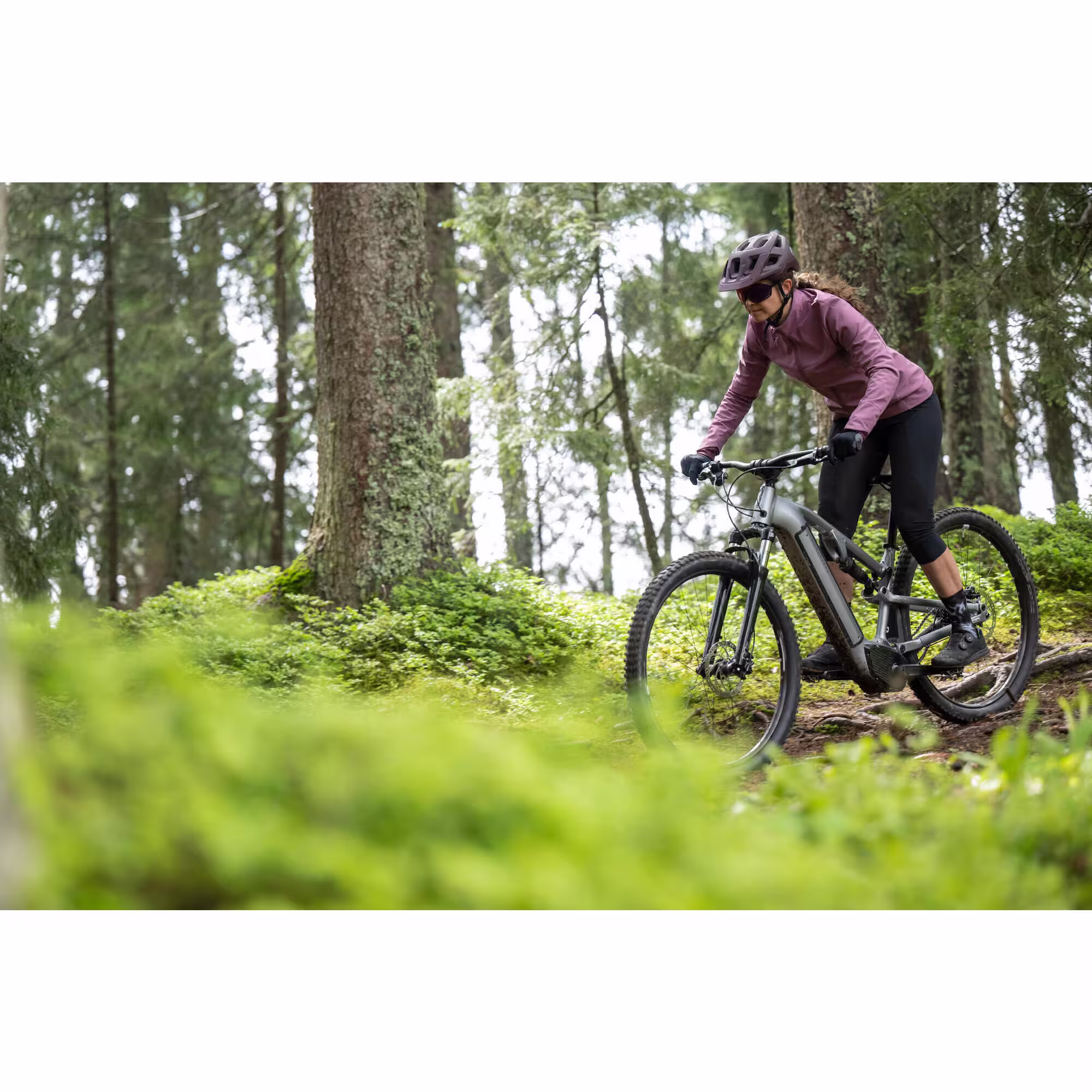 Notre VTTAE Femme Tout Suspendu est conçu pour les amateurs de randonnées exigeantes sur chemins cassants et terrains vallonnés, offrant une expérience de pilotage optimisée. Grâce à son assistance électrique, vous aborderez les dénivelés modérés avec aisance, prolongeant ainsi le plaisir de vos sorties. Ce VTT combine puissance et confort, vous permettant de vous aventurer plus loin et d’explorer de nouveaux horizons.