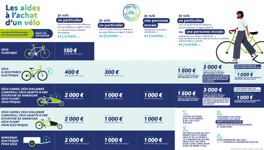 Acheter un vélo à assistance électrique (VAE) représente un investissement, mais saviez-vous qu’il existe de nombreuses aides financières pour vous accompagner ? L’État, les collectivités locales, et parfois même votre employeur peuvent contribuer à alléger considérablement le coût de votre vélo électrique. Sur cette page, nous vous expliquons tout ce qu’il faut savoir pour profiter de ces subventions, primes écologiques et bonus à l’achat.